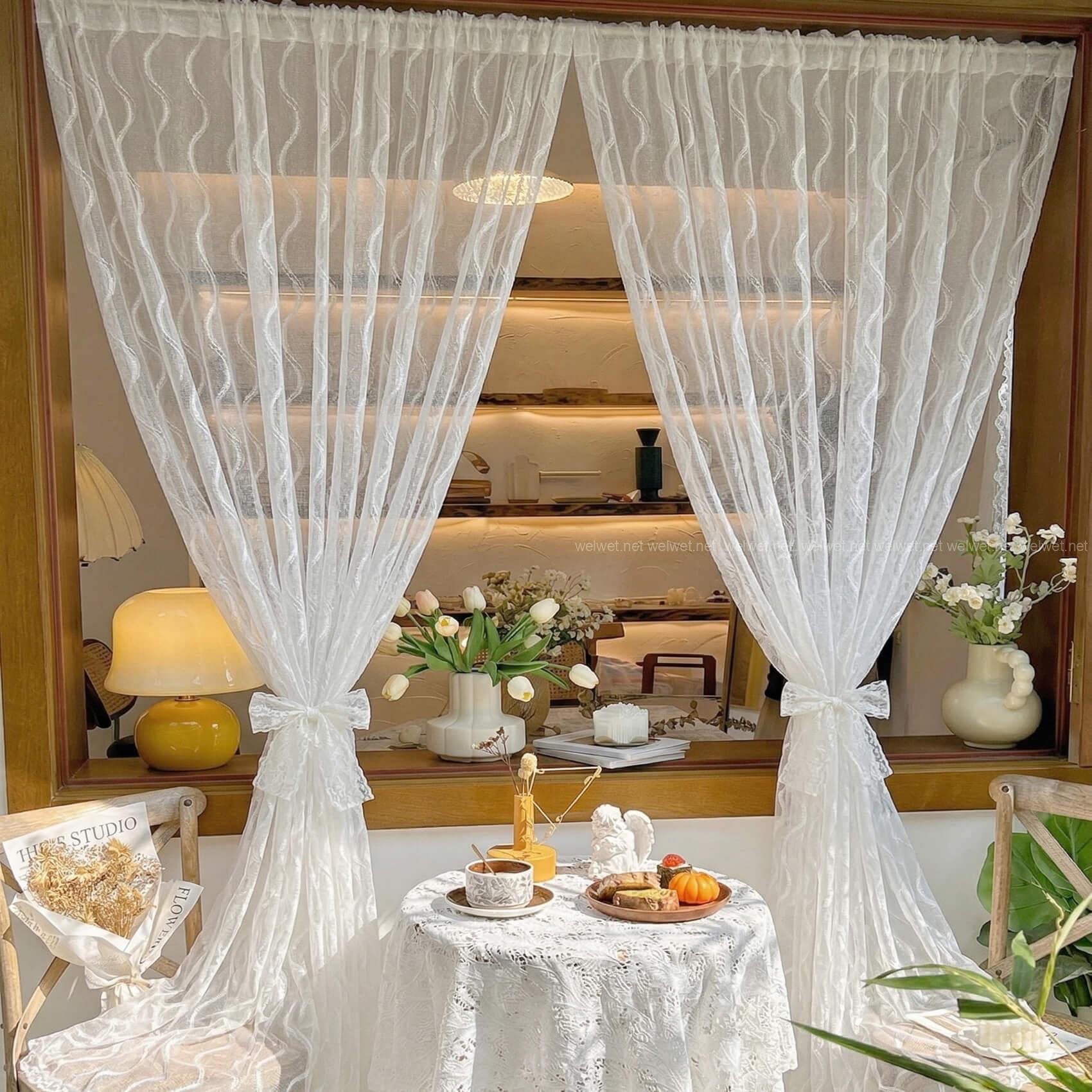 Крім білого кольору, в категорію "білого тюлю" потрапляють ще різні відтінки кольору (молочний, срібний) і бежевий колір. Також, в дизайні тюлю використовуються поєднання білого кольору і оптичного затемнення за рахунок ущільнення тканини в різних геометричних візерунках. Крім дуже різноманітного дизайну, ми можемо запропонує різні варіанти комплектів за розмірами - довжини і ширини.