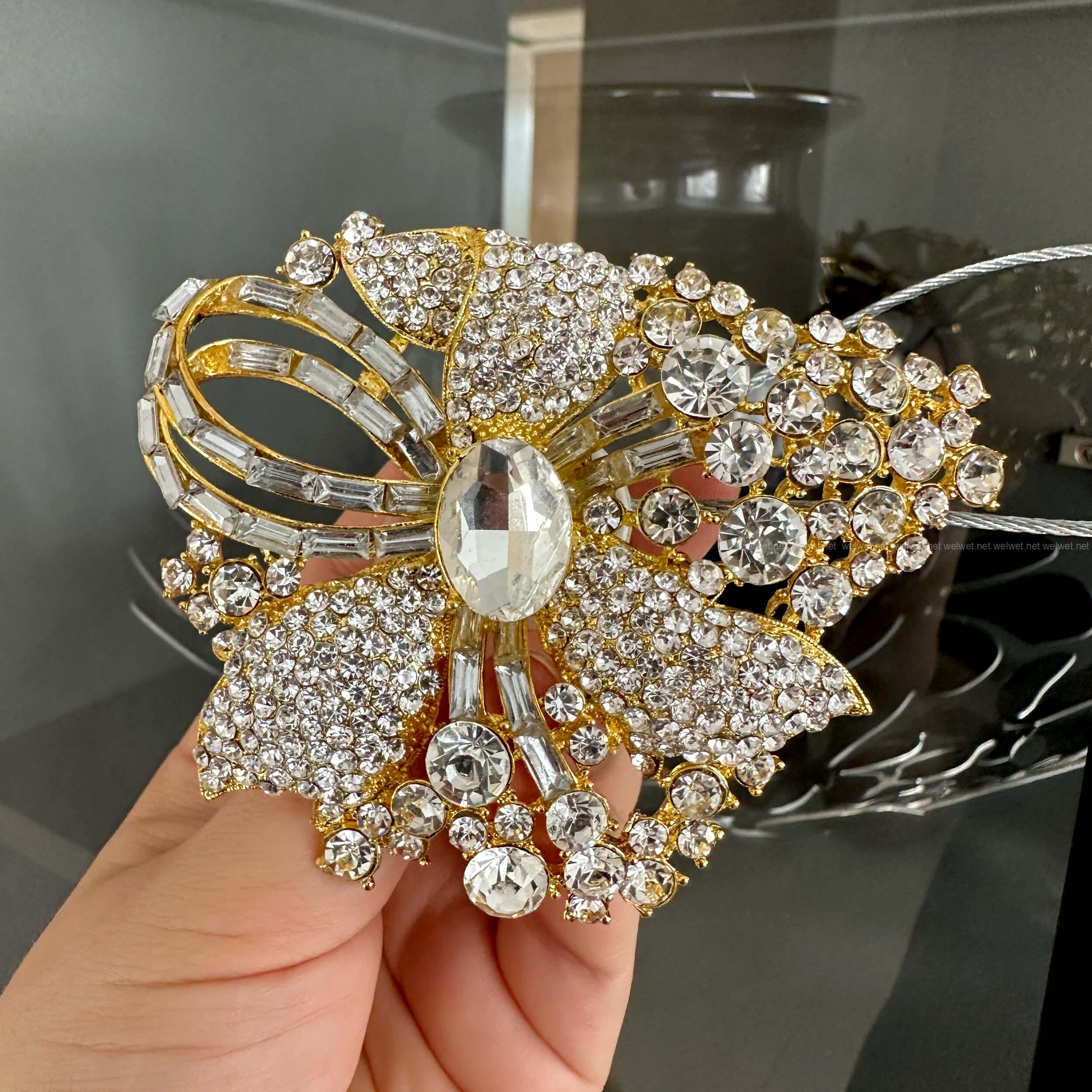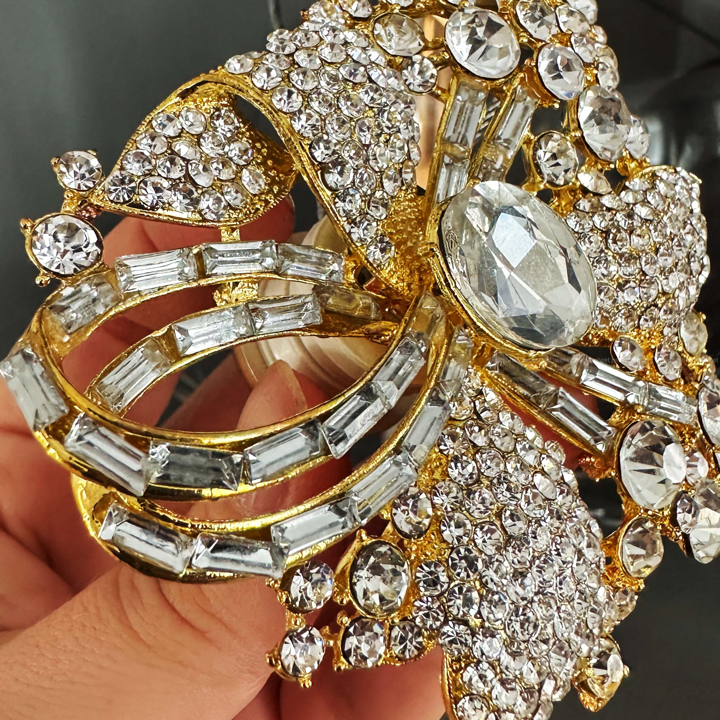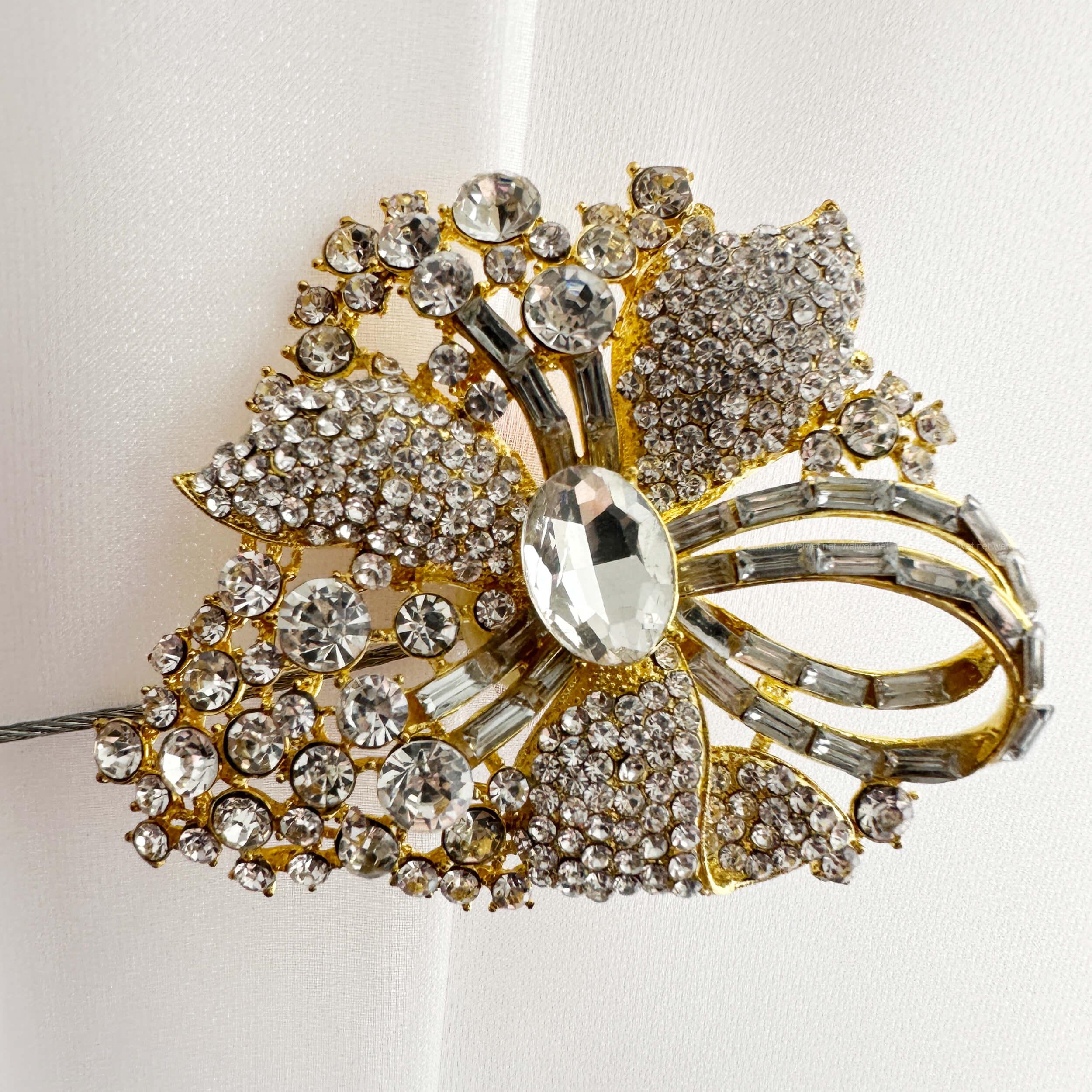 Брошка-магніт для штор з стразами та блискітками D033. Тримач для штор Золото