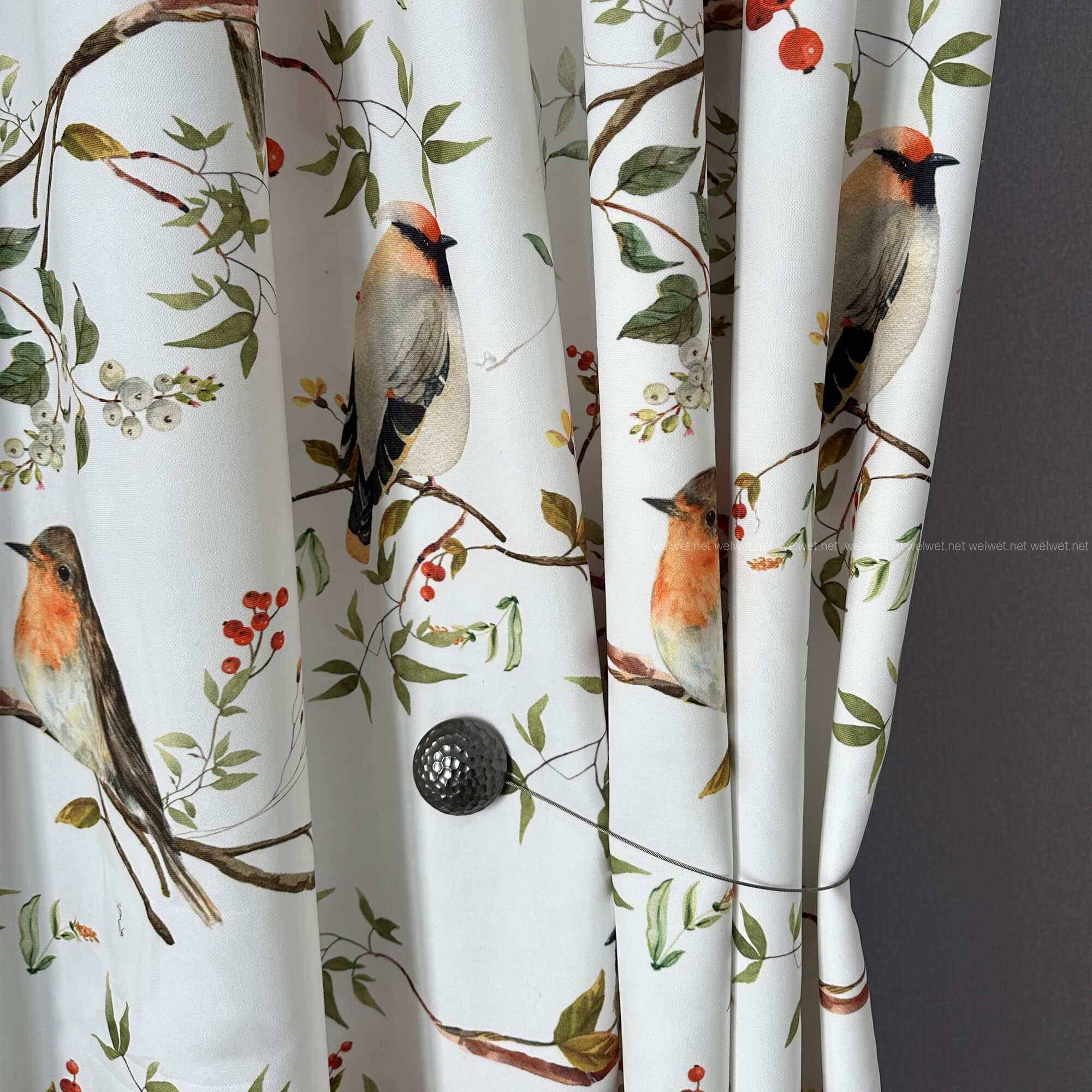 Кухонний комплект вкорочених штор з малюнком птахів.