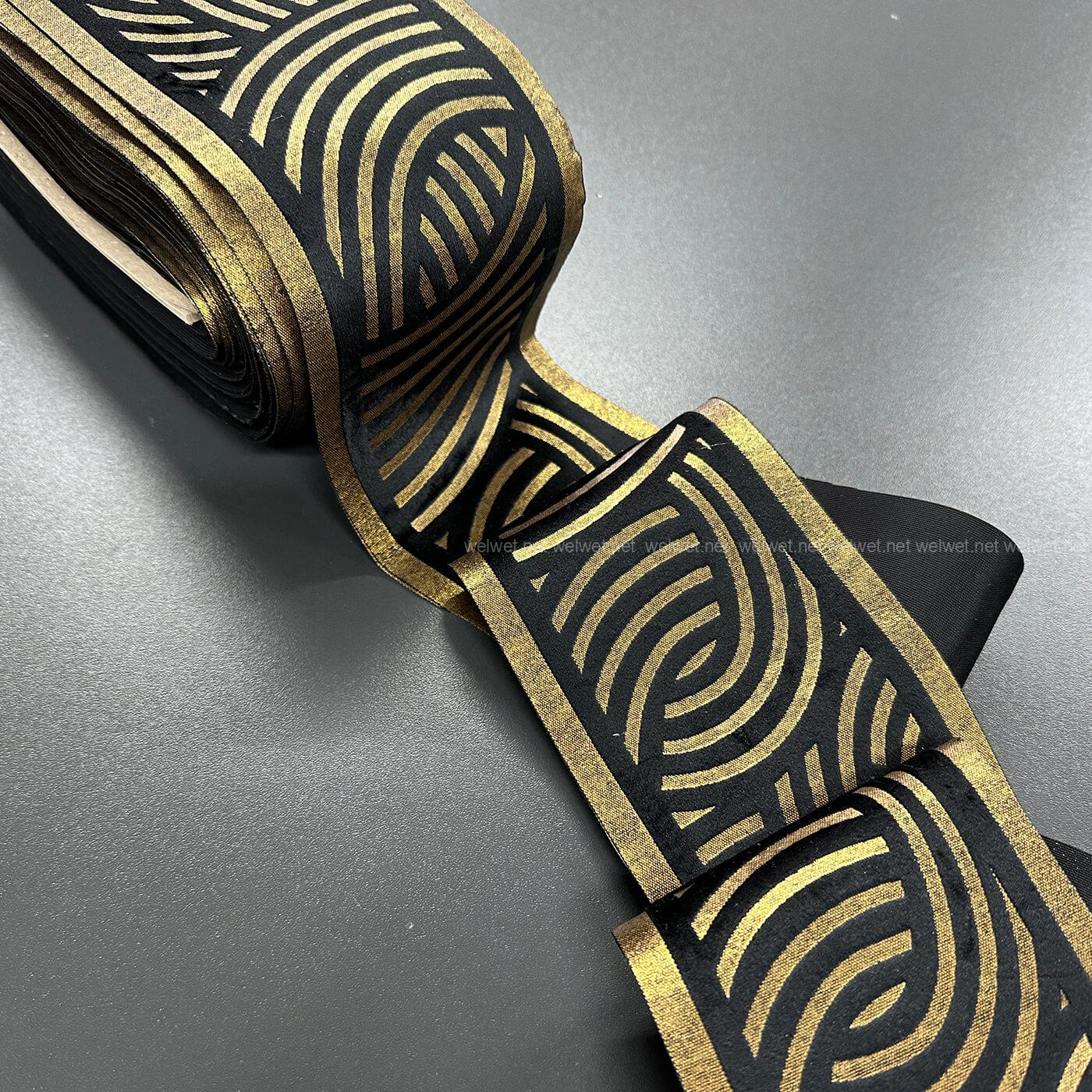 Текстильний оздоблюючий шторний бордюр Арт Деко 5 з флоком, Чорна з золотом стрічка для штор 9,5см