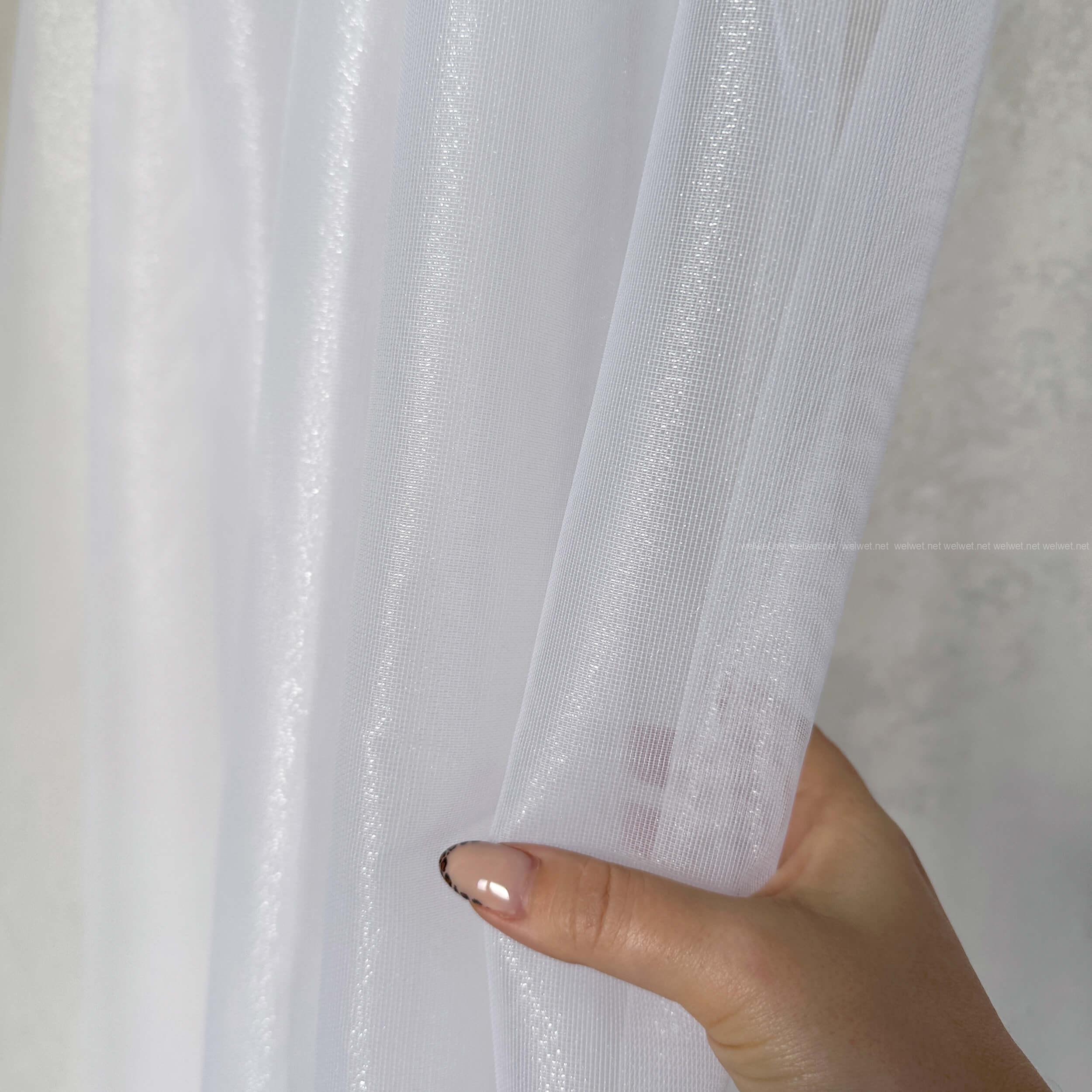 Сітка з мілкою структурою, гарно пропускає світло, на сонці має оригінальний прламутровий відблиск. Гарно доповнює портьєри з оксамиту, мікровелюру, жаккарду та блекауту.