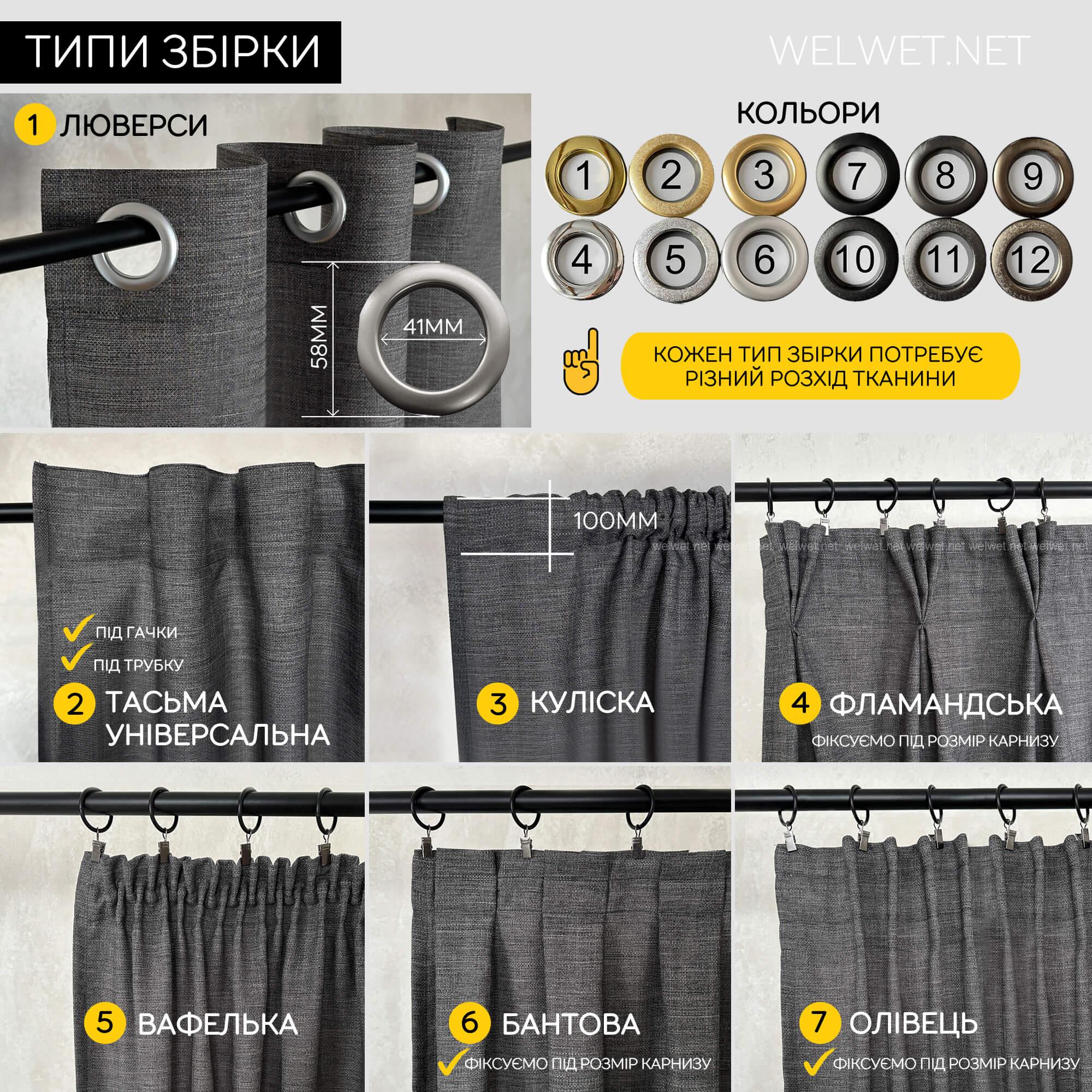 • Преміум-стиль: пошиття на систему «Нова хвиля» (ідеально рівні вертикальні складки).