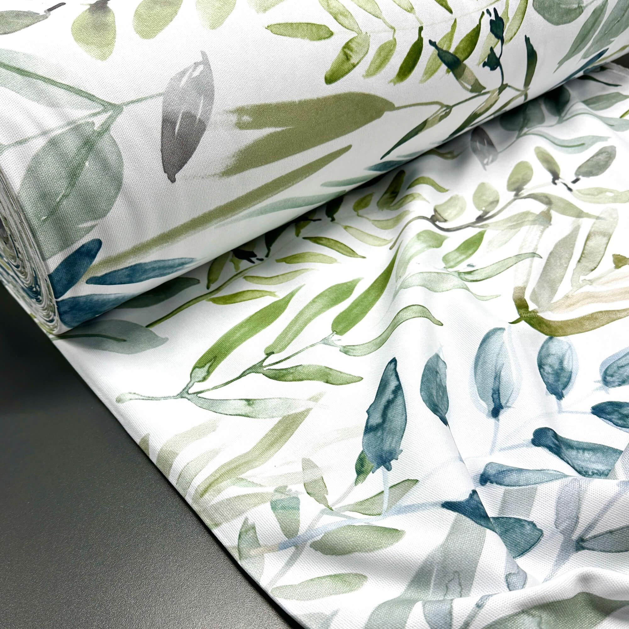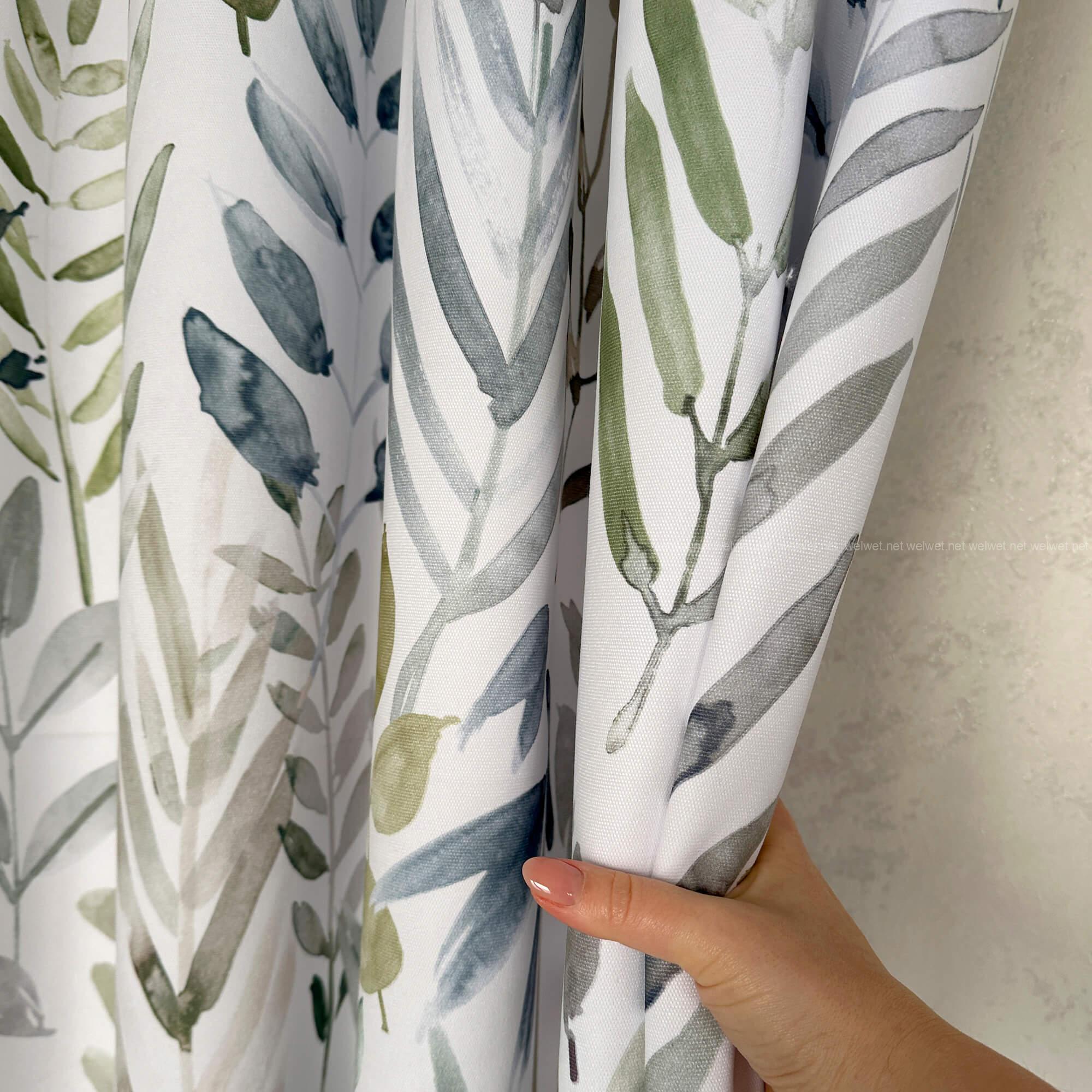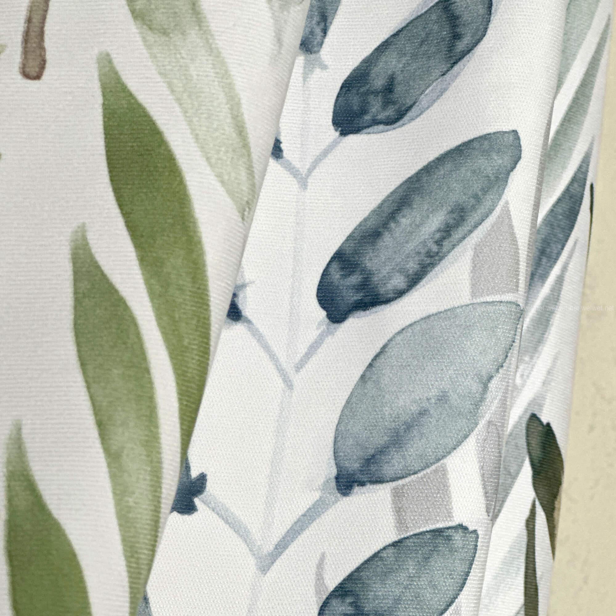 Світлі штори з акварельним принтом, оригінальні штори з листям, штори під гачки -1,5х2,7м -2 шт