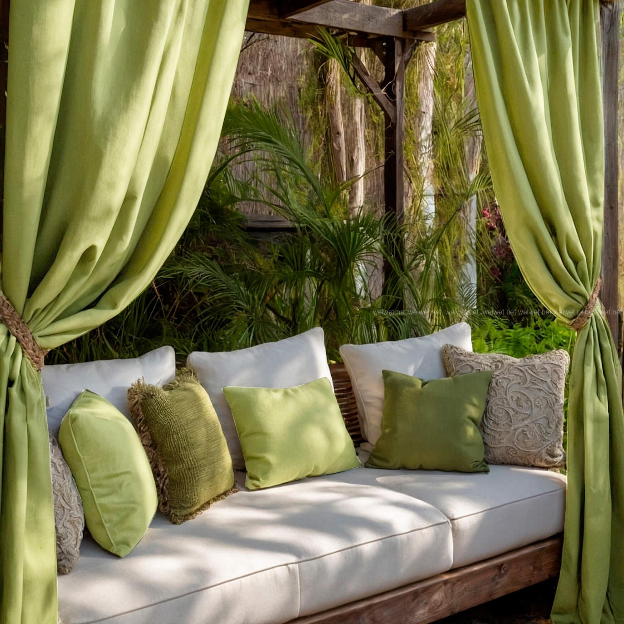 Шторы Linen Design 05, Шторы из плотного льна 1,5х2,5м -2 шт, Салатовые шторы под заказ