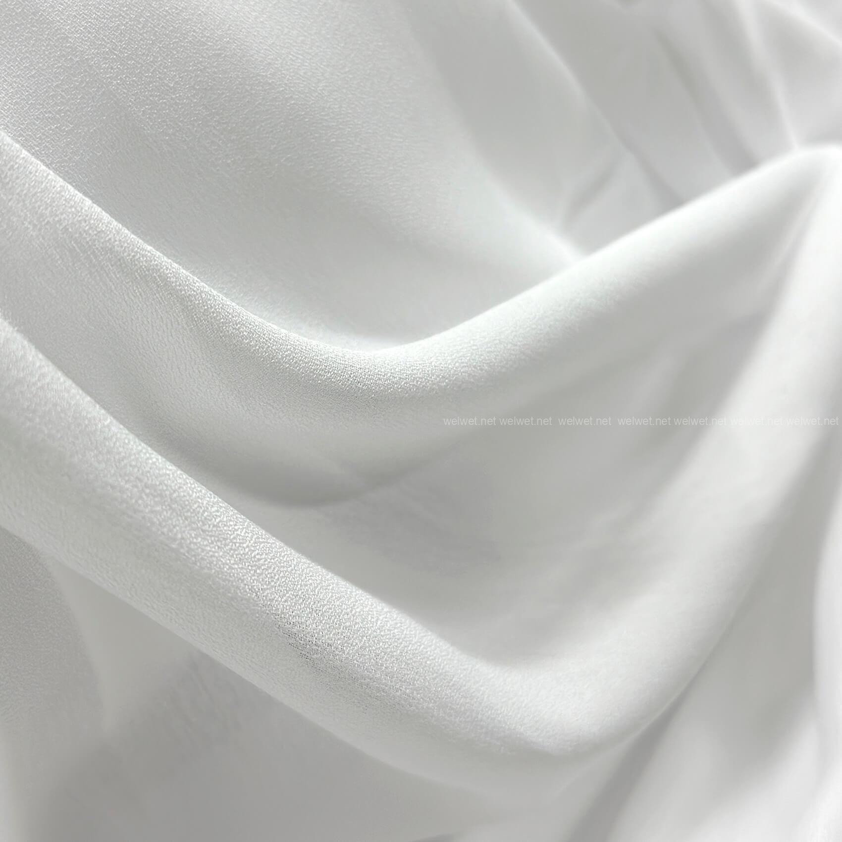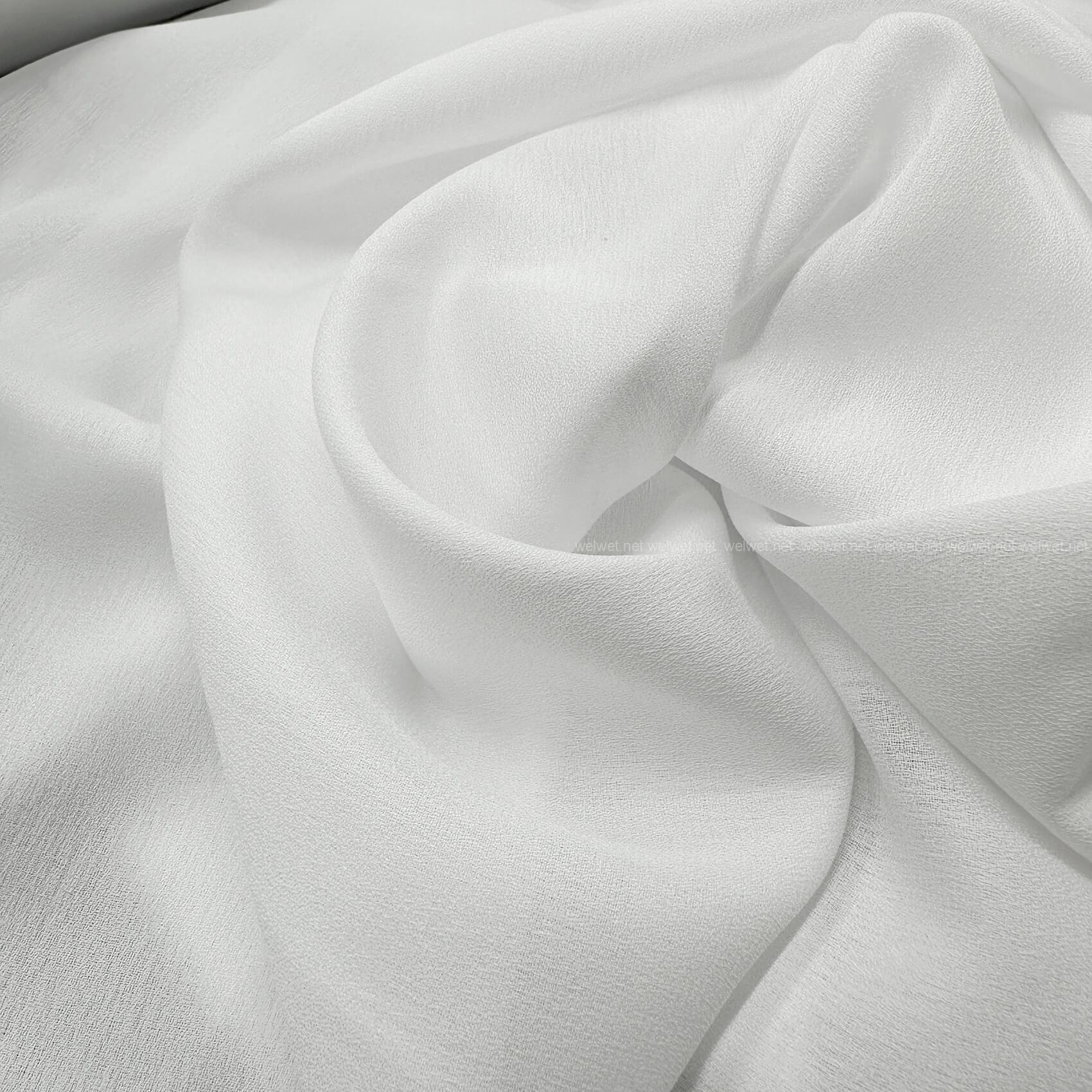 Плотный креп-шелк Meliss в белом цвете турецкого производства. Ткань достаточно плотная, мягкая, текстурная и хорошо собирается в складки.