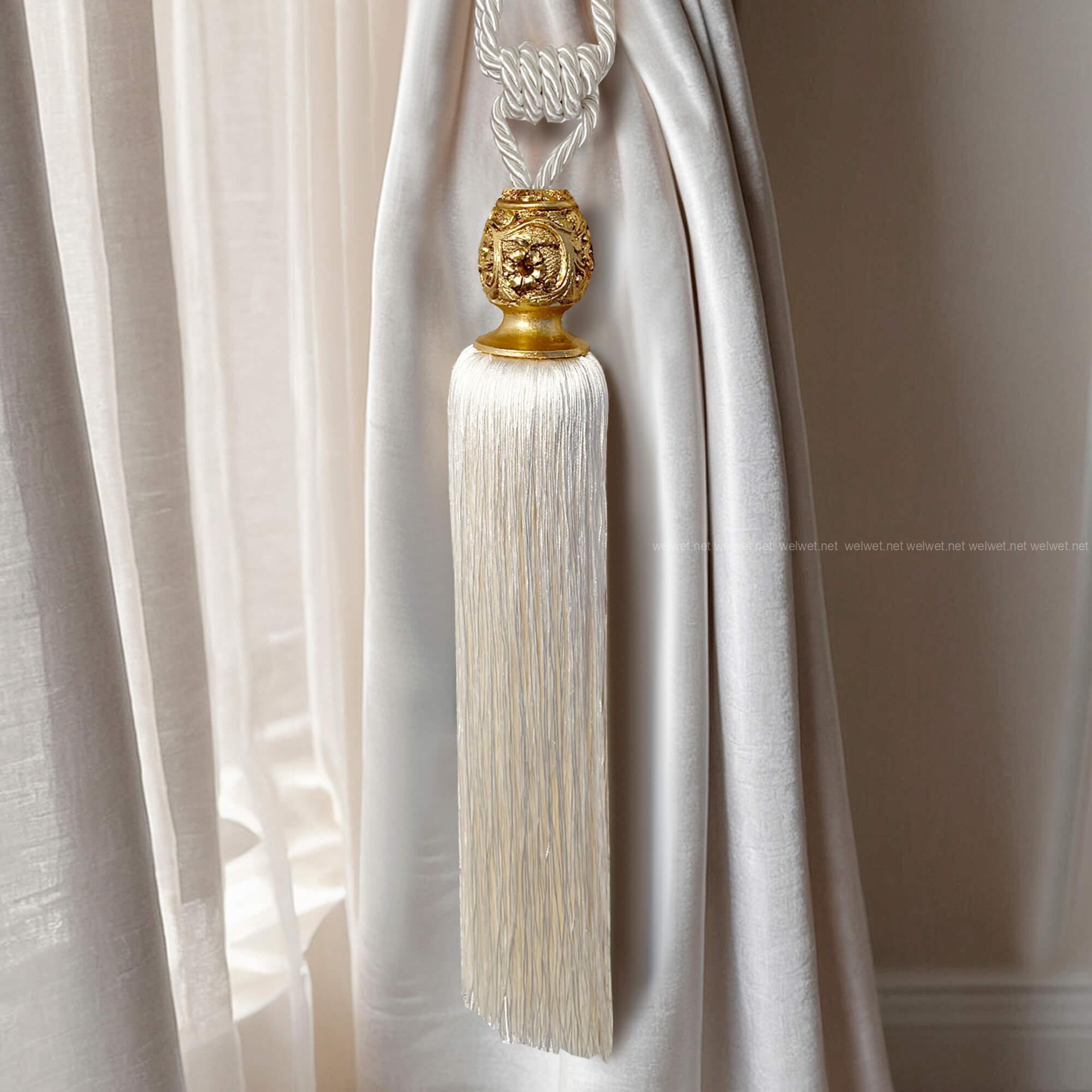 ☝ Эта кисточка прекрасно подходит к различным типам штор, от роскошных бархатных и велюровых, до эксклюзивных жаккардовых, сатиновых тканей. Она также подойдет к однотонным тканям с современной структурой или узором, а также к грубым поверхностям, таким как лен или рогожка.