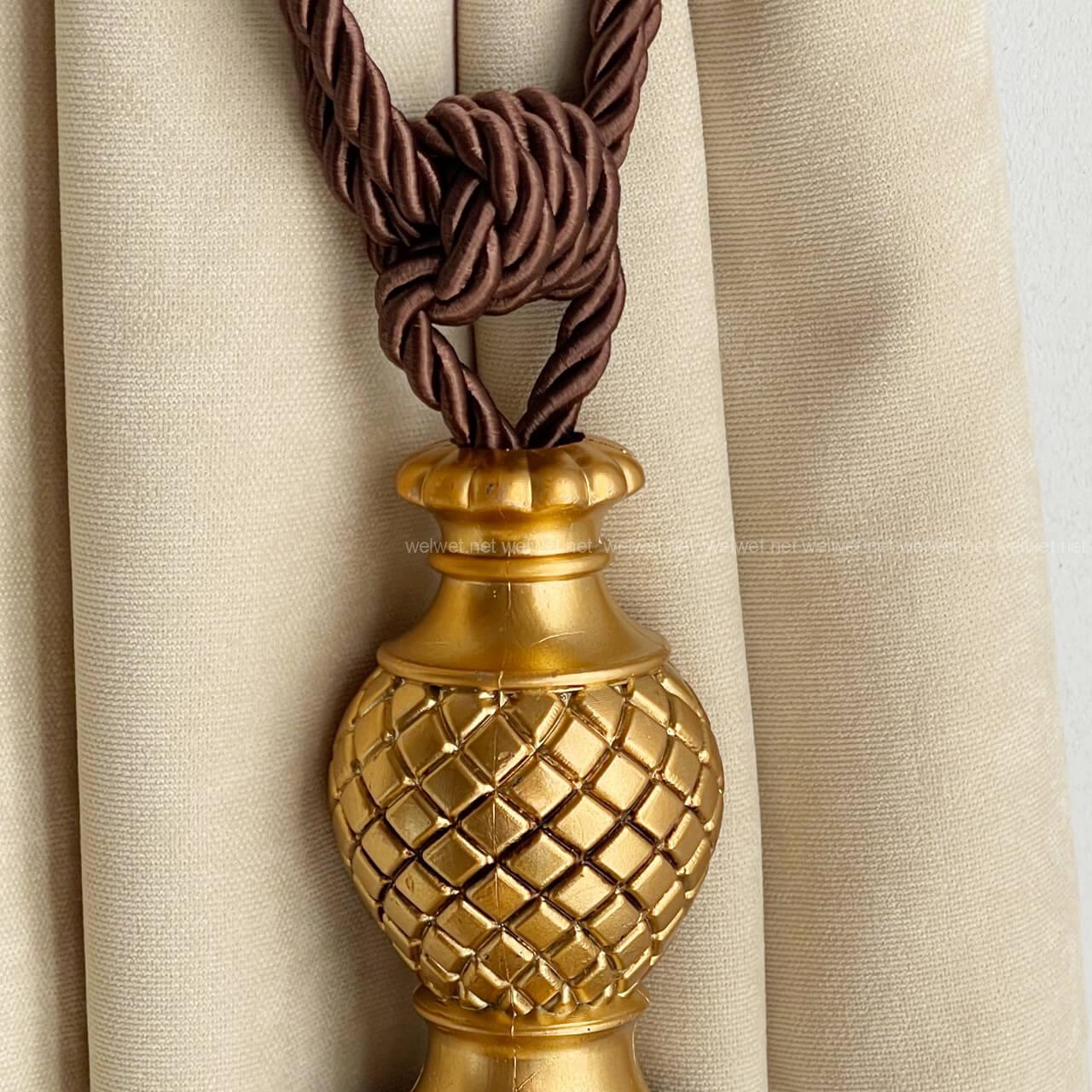 Наш декор пасує до різних видів штор: від розкішних велюрових та жаккардових до тканин з глянцевою поверхнею. Він чудово поєднується з однотонними тканинами та тканинами з сучасним візерунком чи структурою.