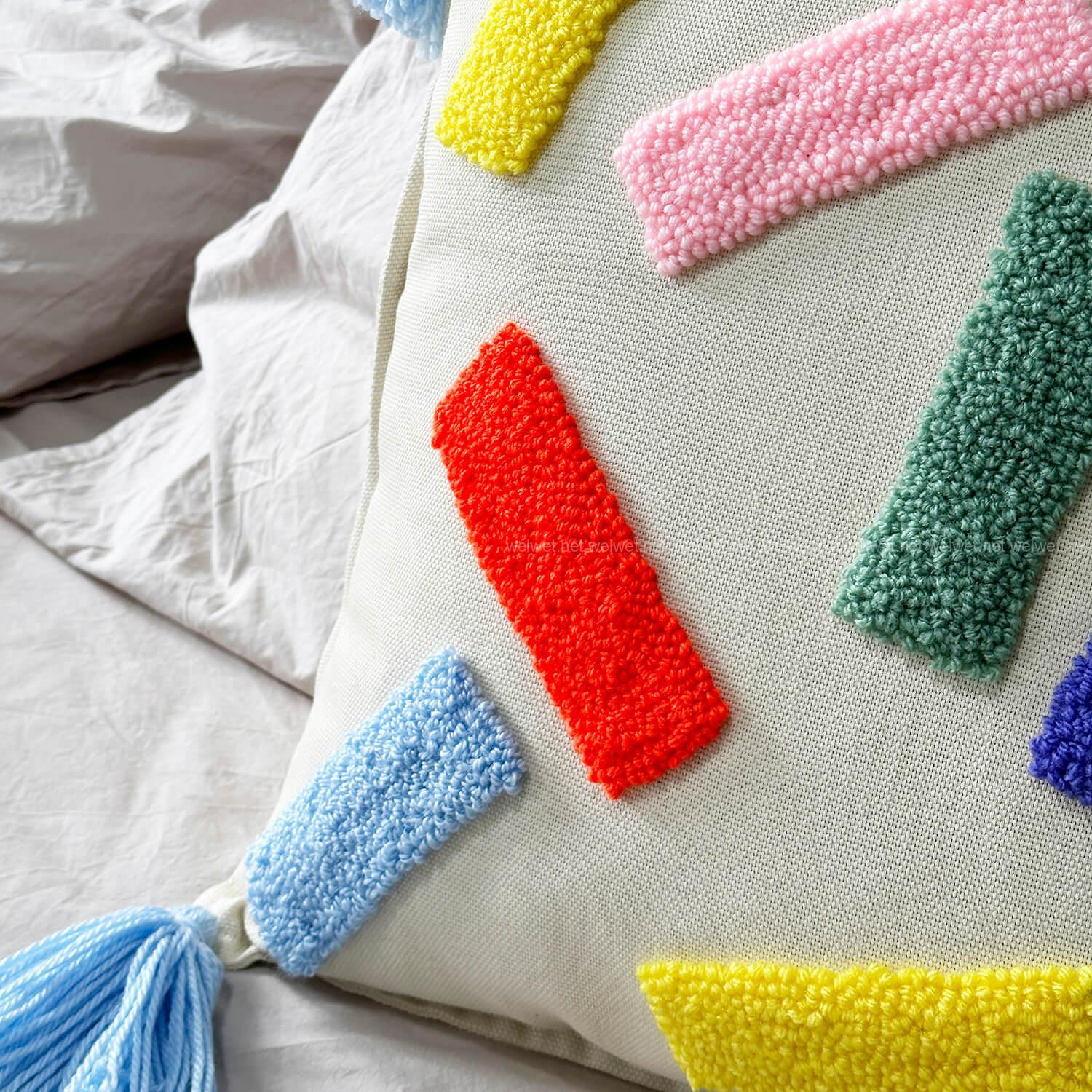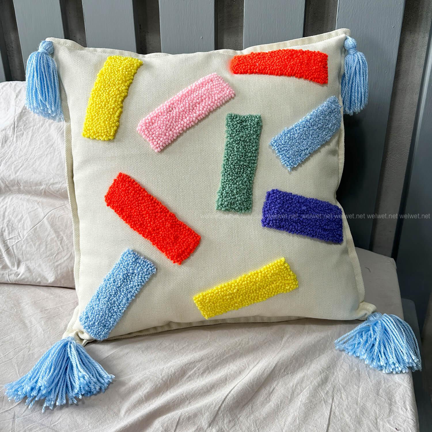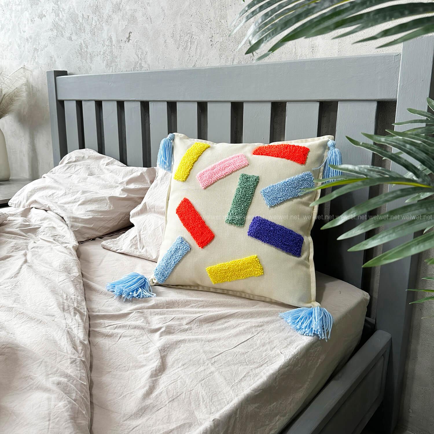 Рекомендации по уходу: Точечная чистка, используйте только ручную стирку, перед стиркой подушку вывернуть наизнанку и стирать при температуре не выше 40 градусов, без замачивания, без отбеливания, без использования агрессивных моющих средств. Сушить только на воздухе, не в сушильной машине. Не тяните за пряжу.