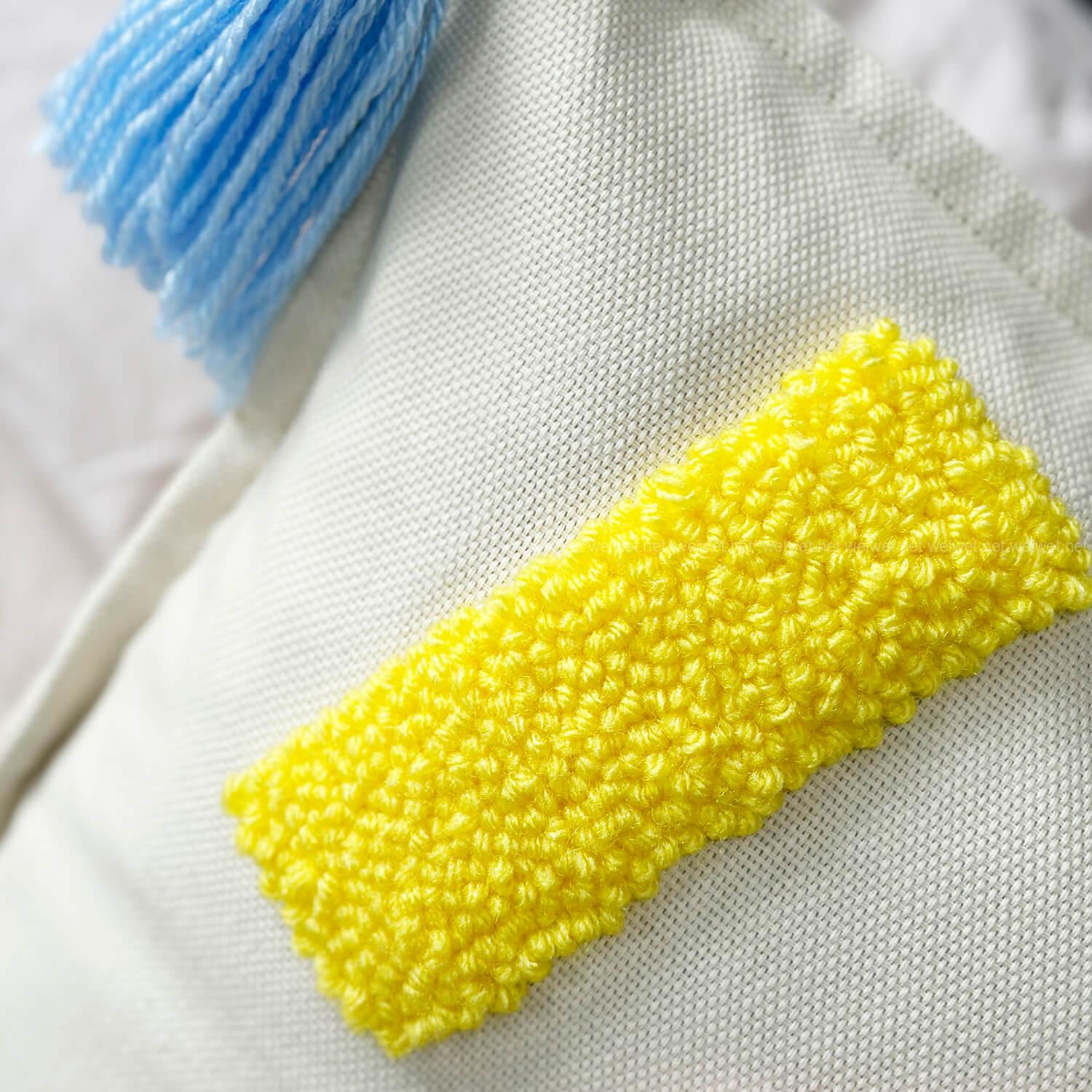 Выполнено вручную в технике ковровой вышивки.