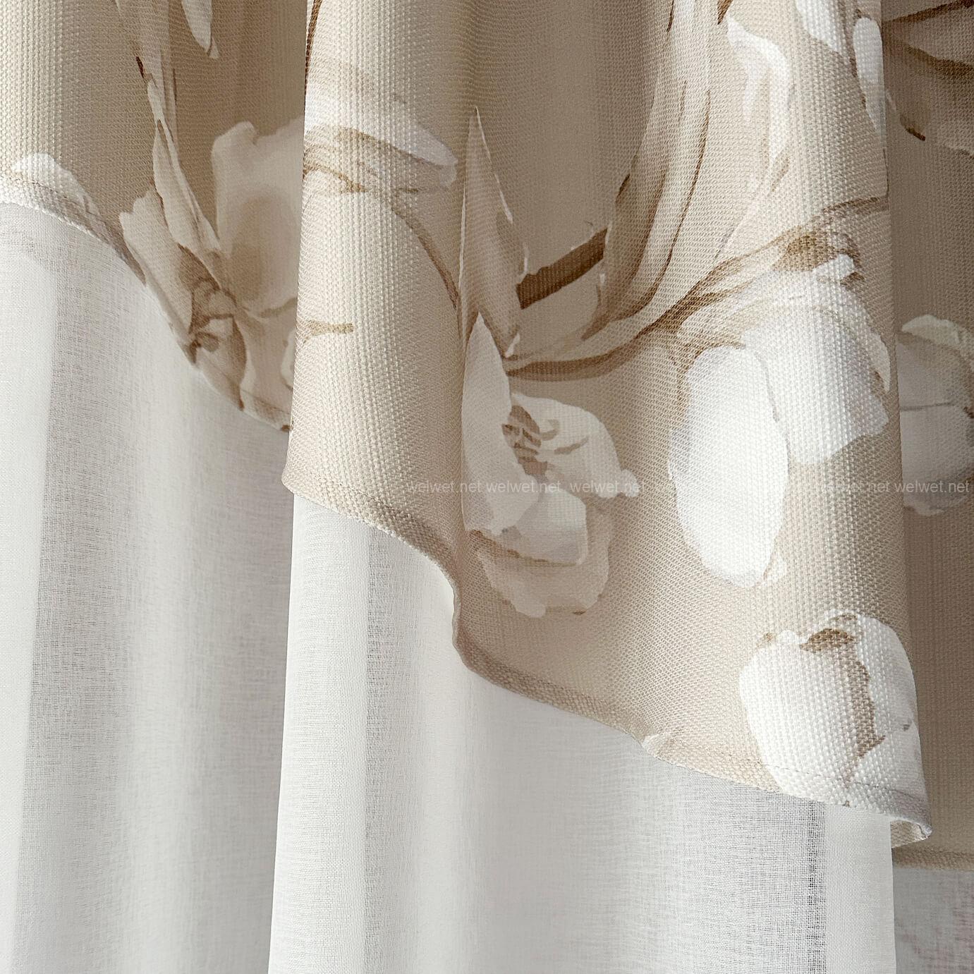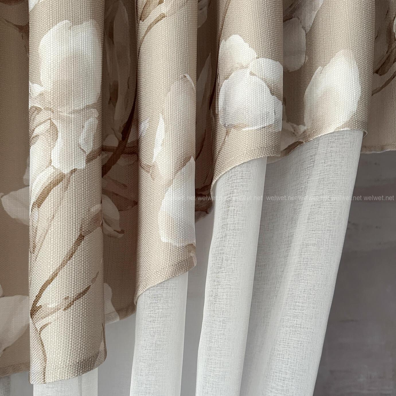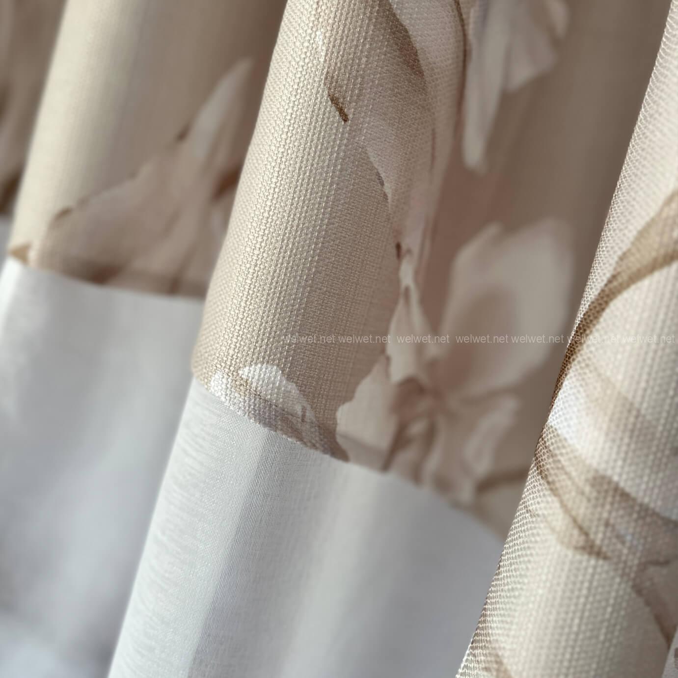 Наша легкая занавеска — это настоящий деликатный акцент в вашем интерьере. Обрамление занавески выполнено на основе оригинальной шторной ткани с текстурой льна и цветочным узором — дарит уют и теплоту, а легкая тюлевая часть из батиста создает ощущение пространства и свежести.