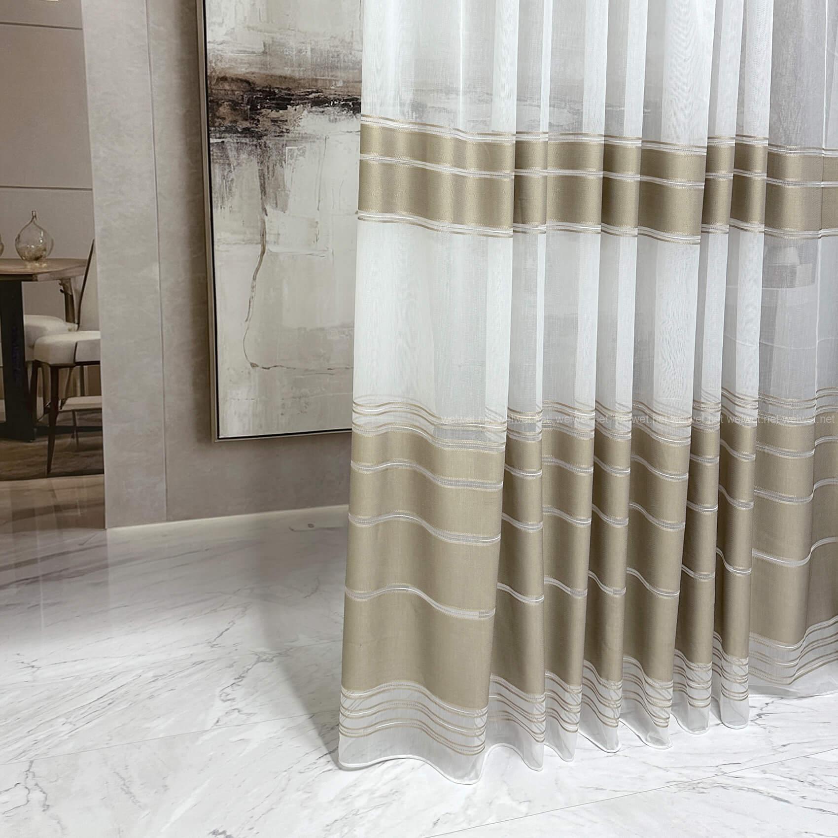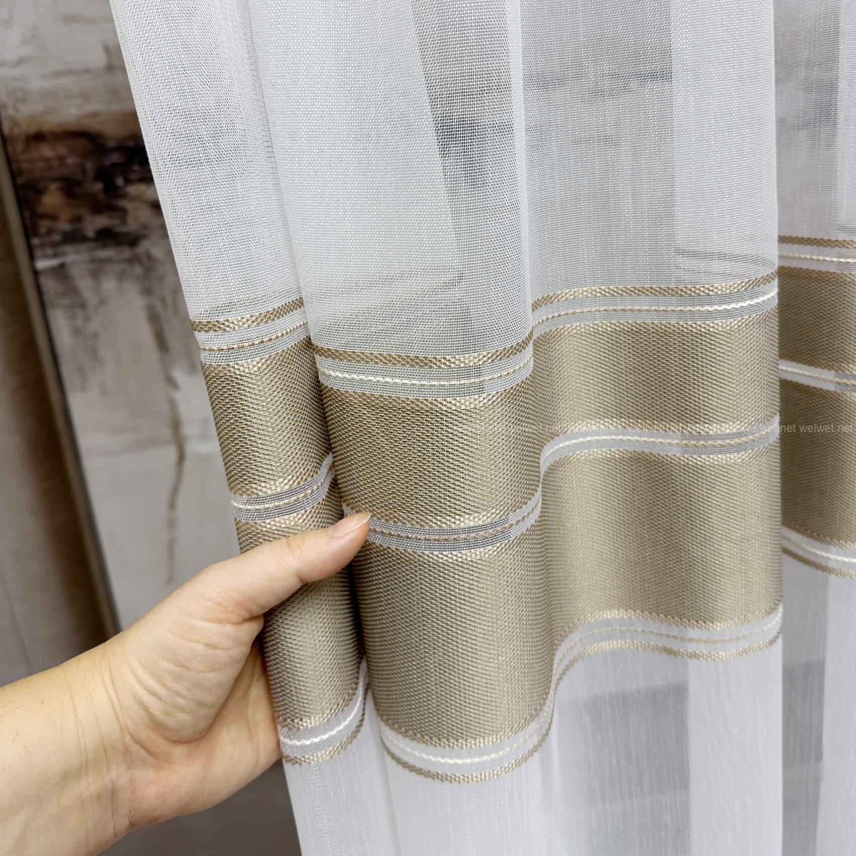 Сучасний тюль на білій сітці з бамбуковою структурою — це вдале поєднання легкості та виразного дизайну. Елегантні смужки додають текстурності та створюють акцент, не перевантажуючи простір. Завдяки напівпрозорій основі тюль прекрасно пропускає світло, водночас зберігаючи затишок.