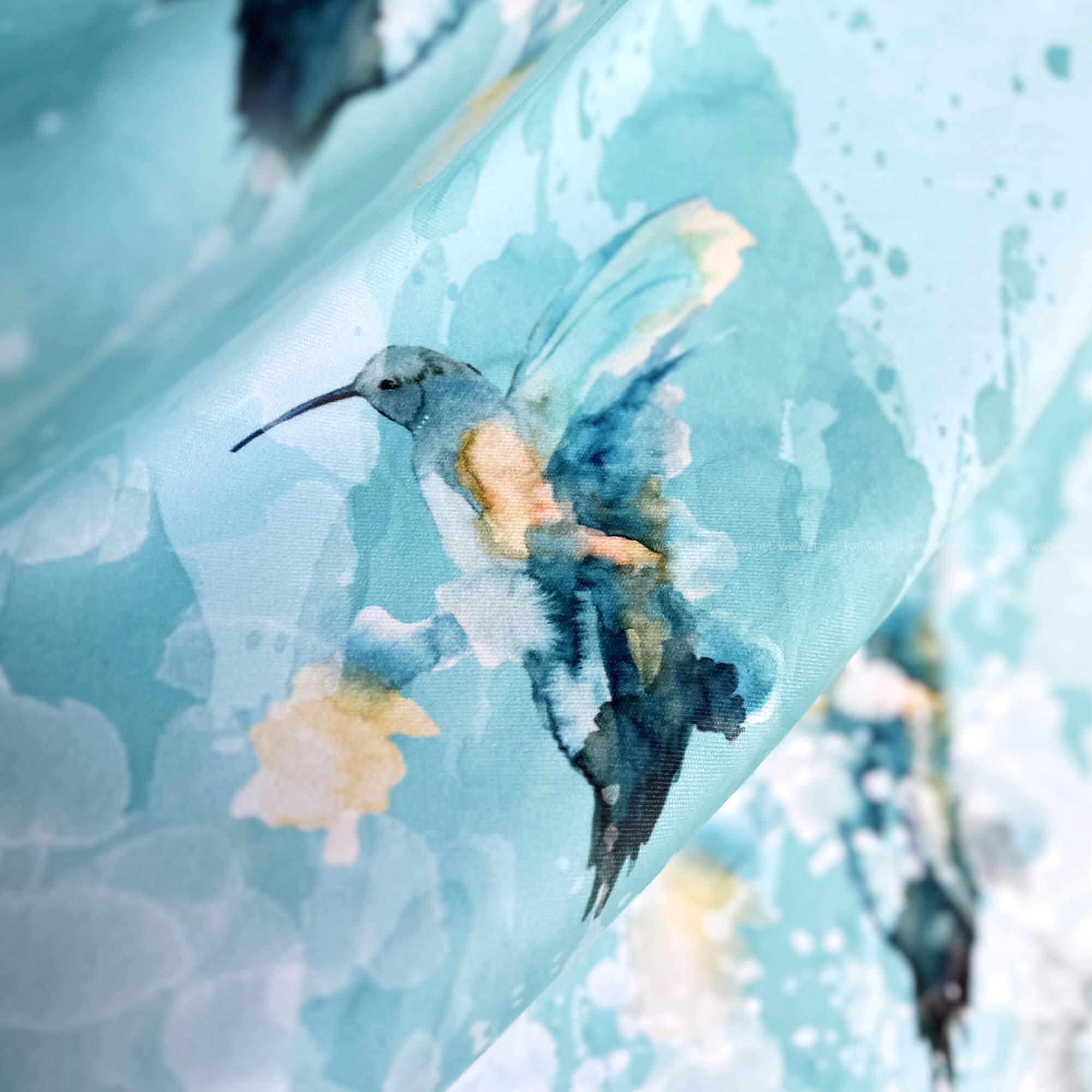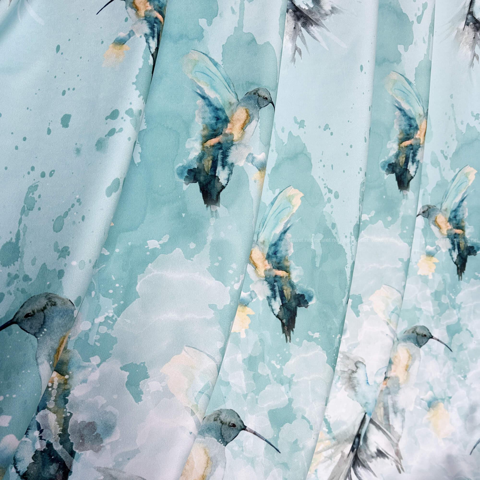 Ищете что-то особенное для детской или спальни? Наши шторы с градиентным переходом от белого к ярко-бирюзовому создадут эффект легкости и свежести, а изящные рисунки колибри в полете придадут пространству очарования и динамики.