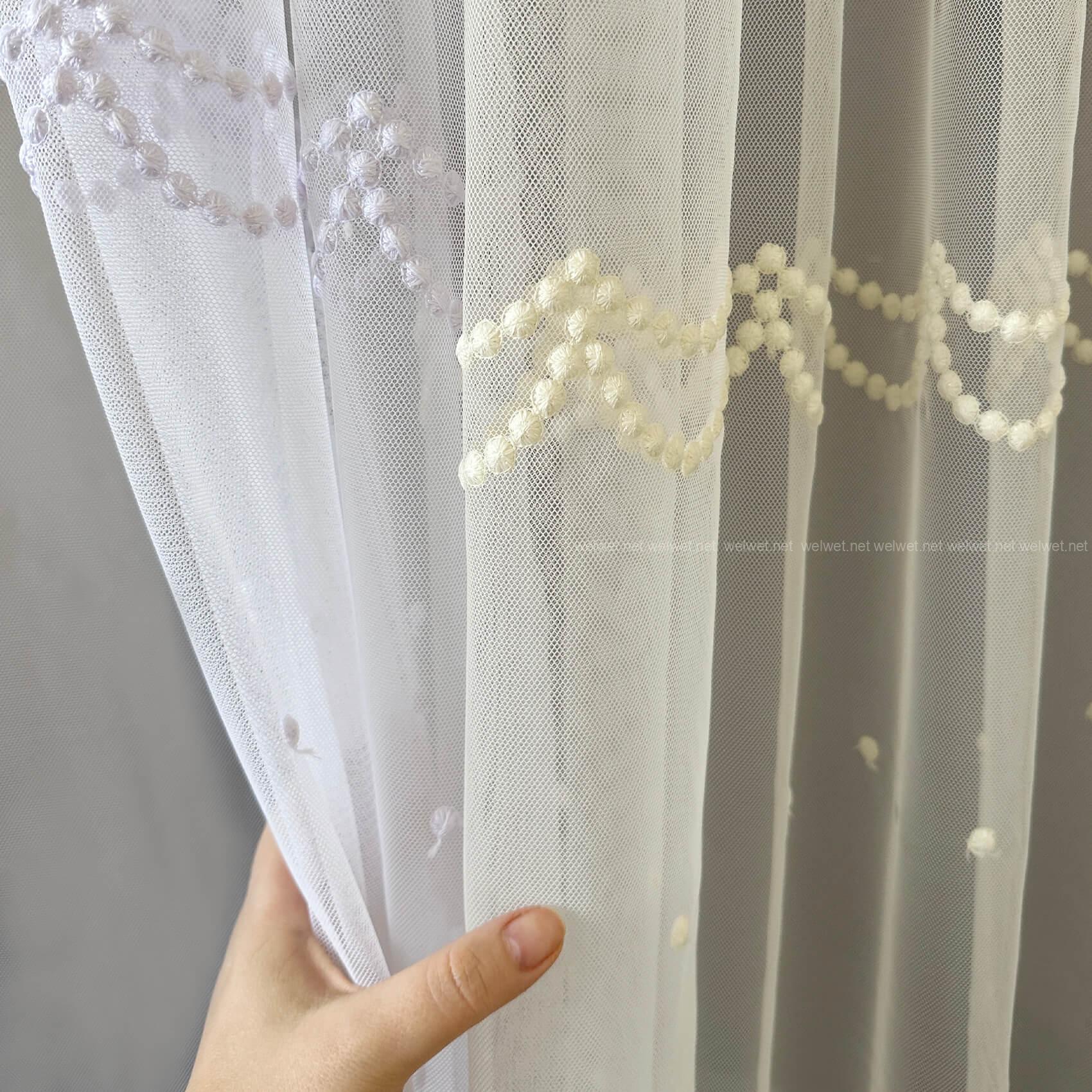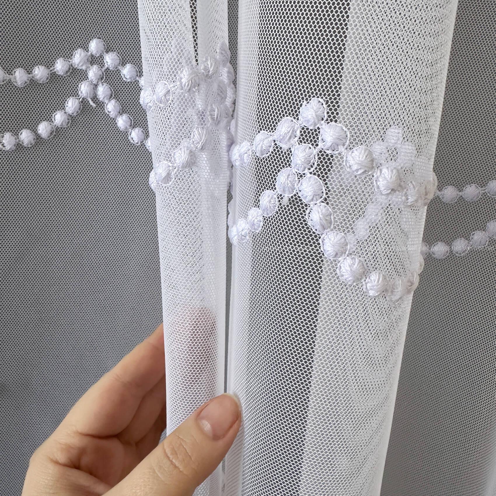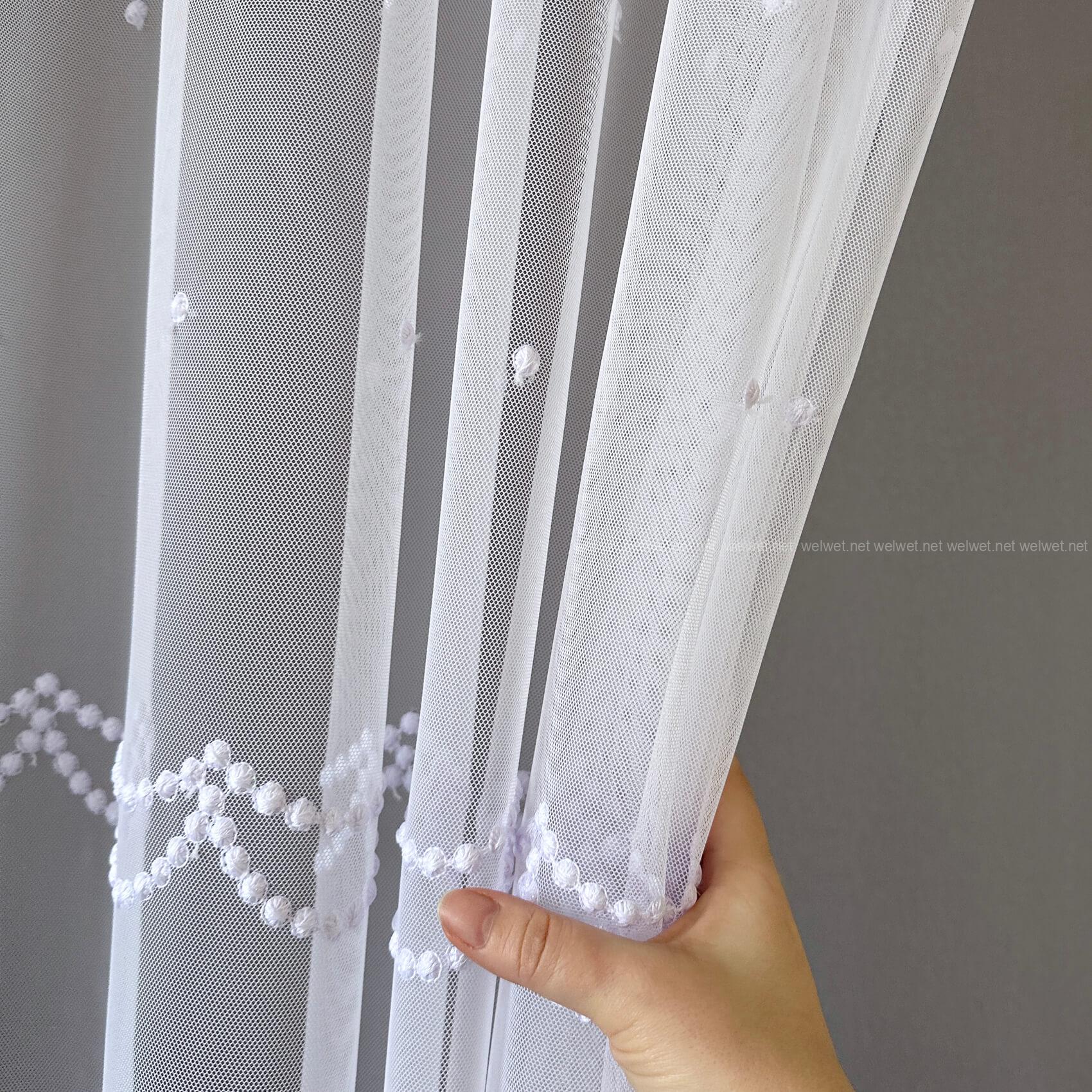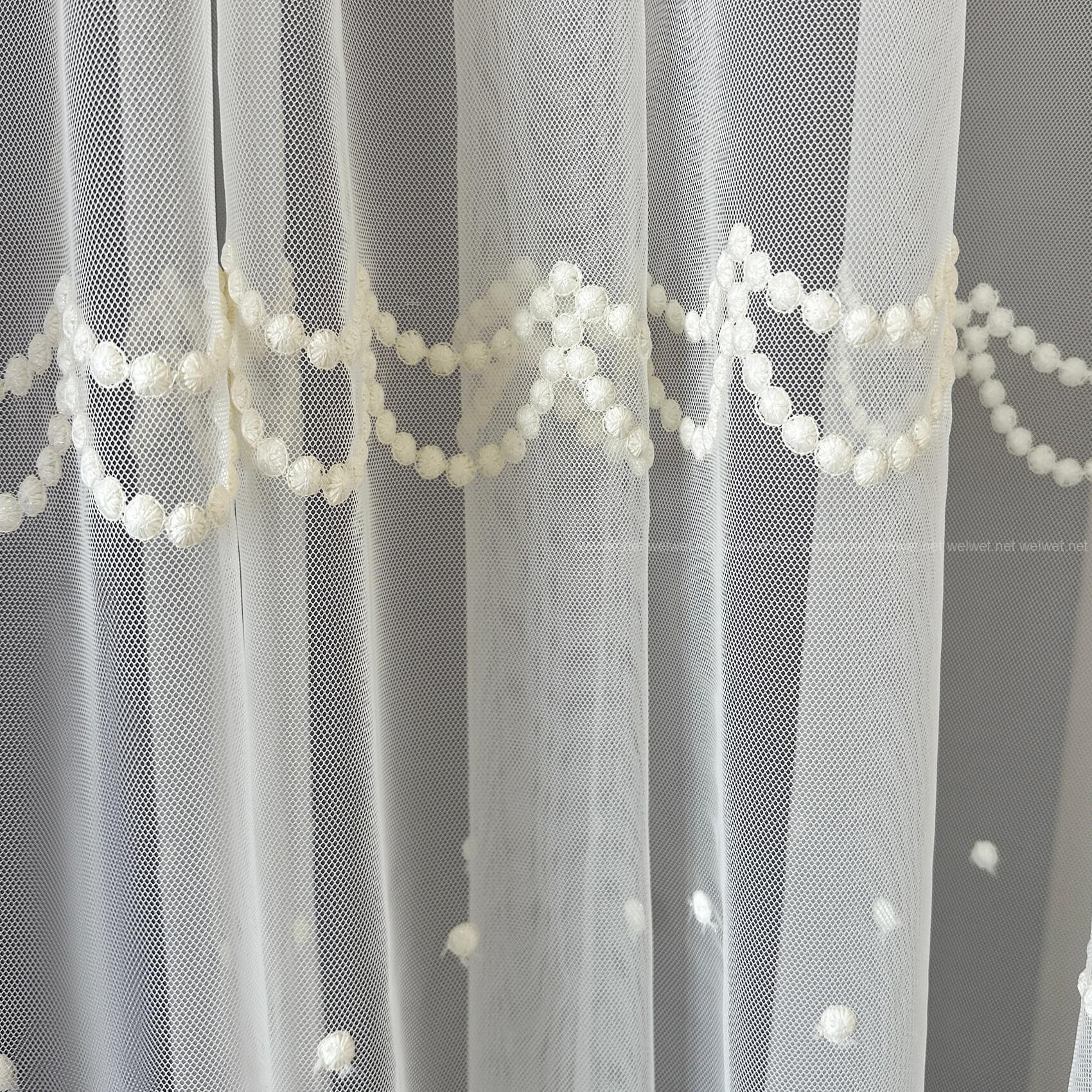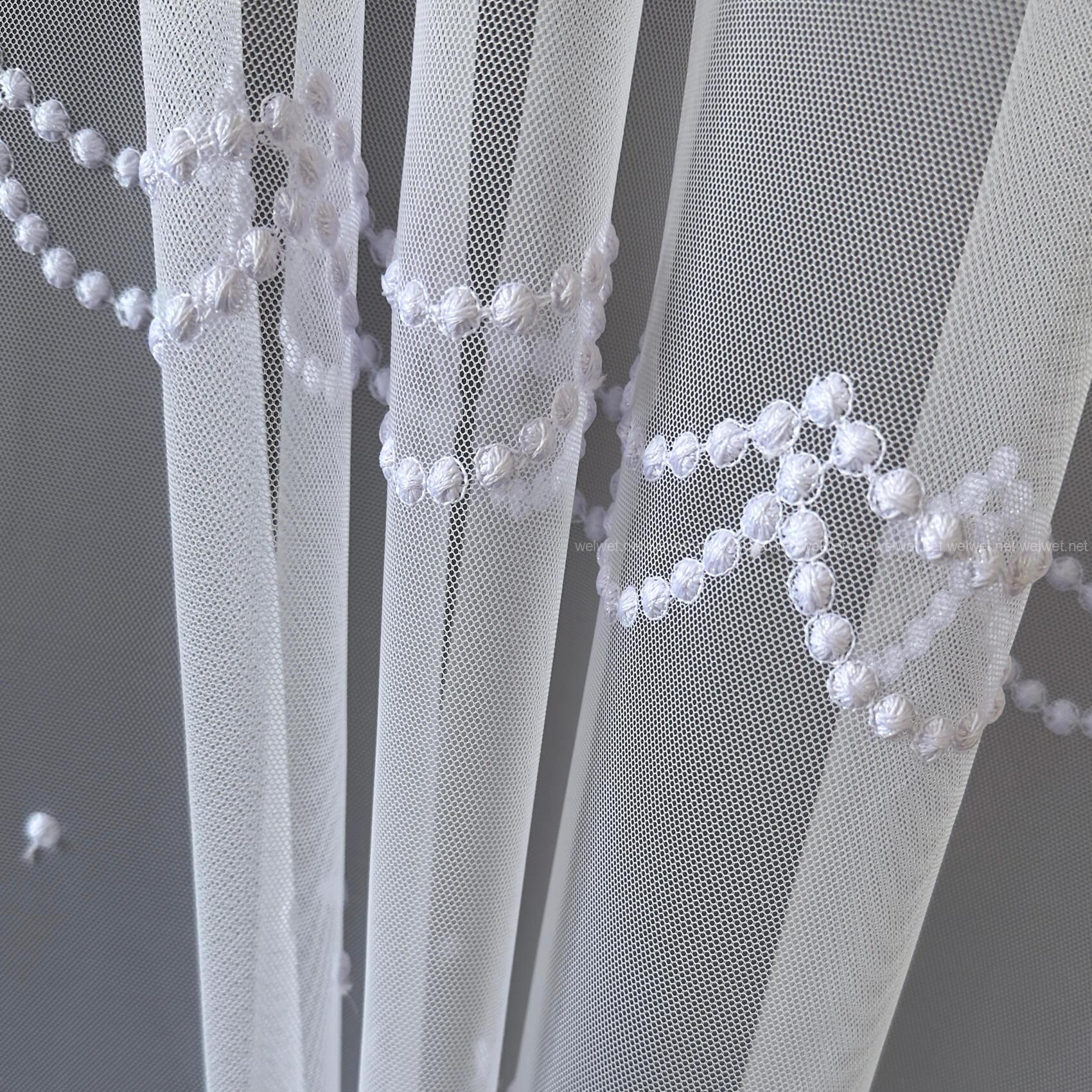 Якісний тюль на основі грек-сітки турецького виробництва з вишивкою у горошок.