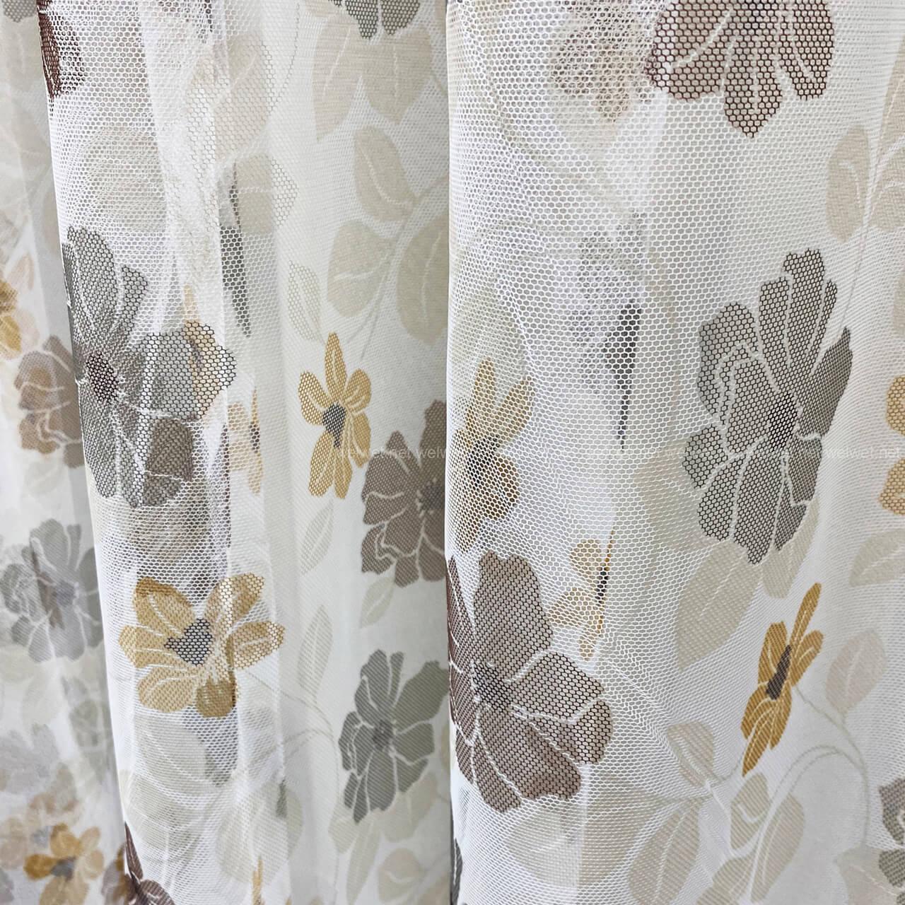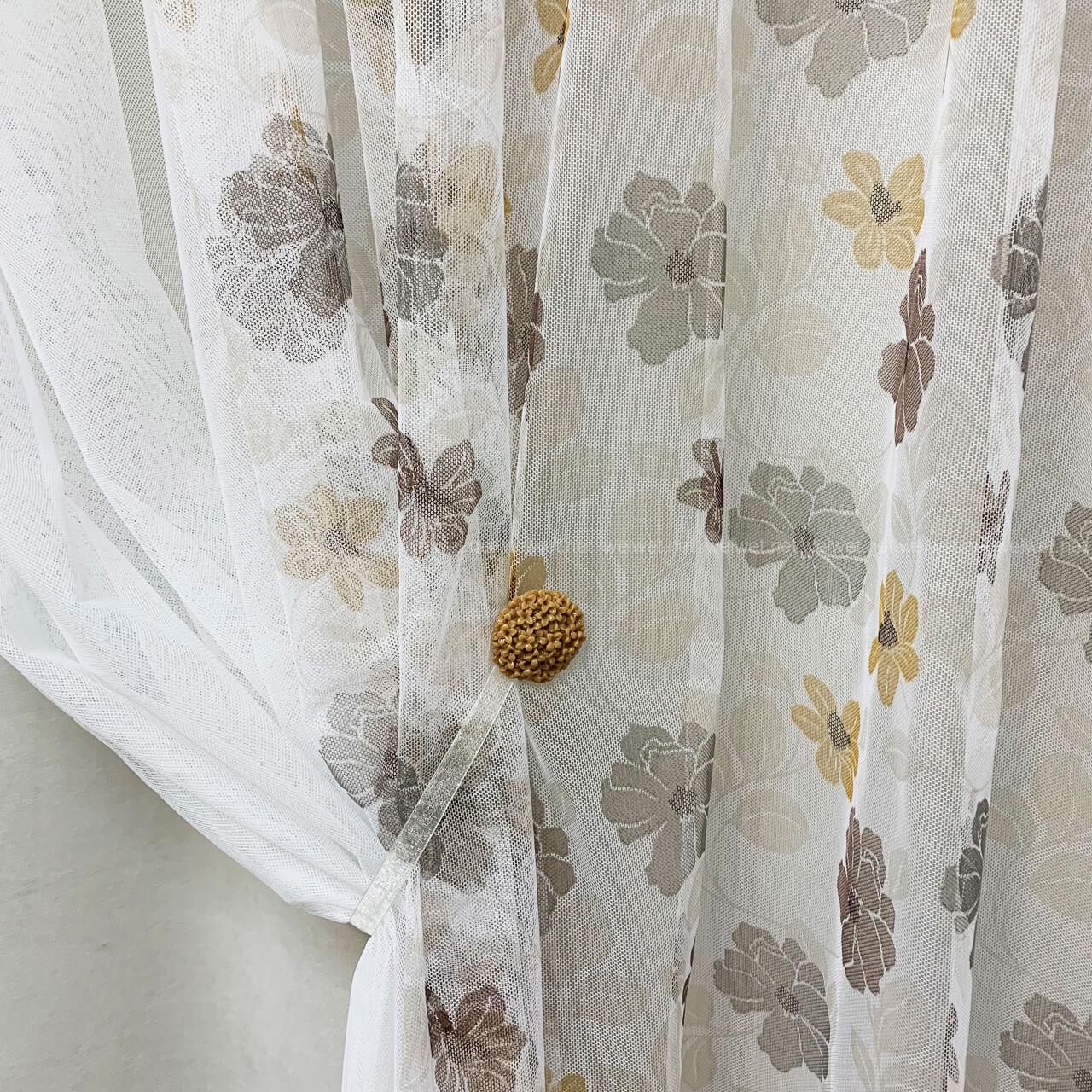Выполнена из легкой грек-сетки с флористическим рисунком в цветы, эта занавеска хорошо пропускает солнечный свет. На окне выглядит нежно и непринужденно.
