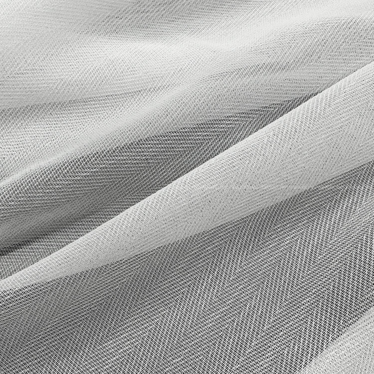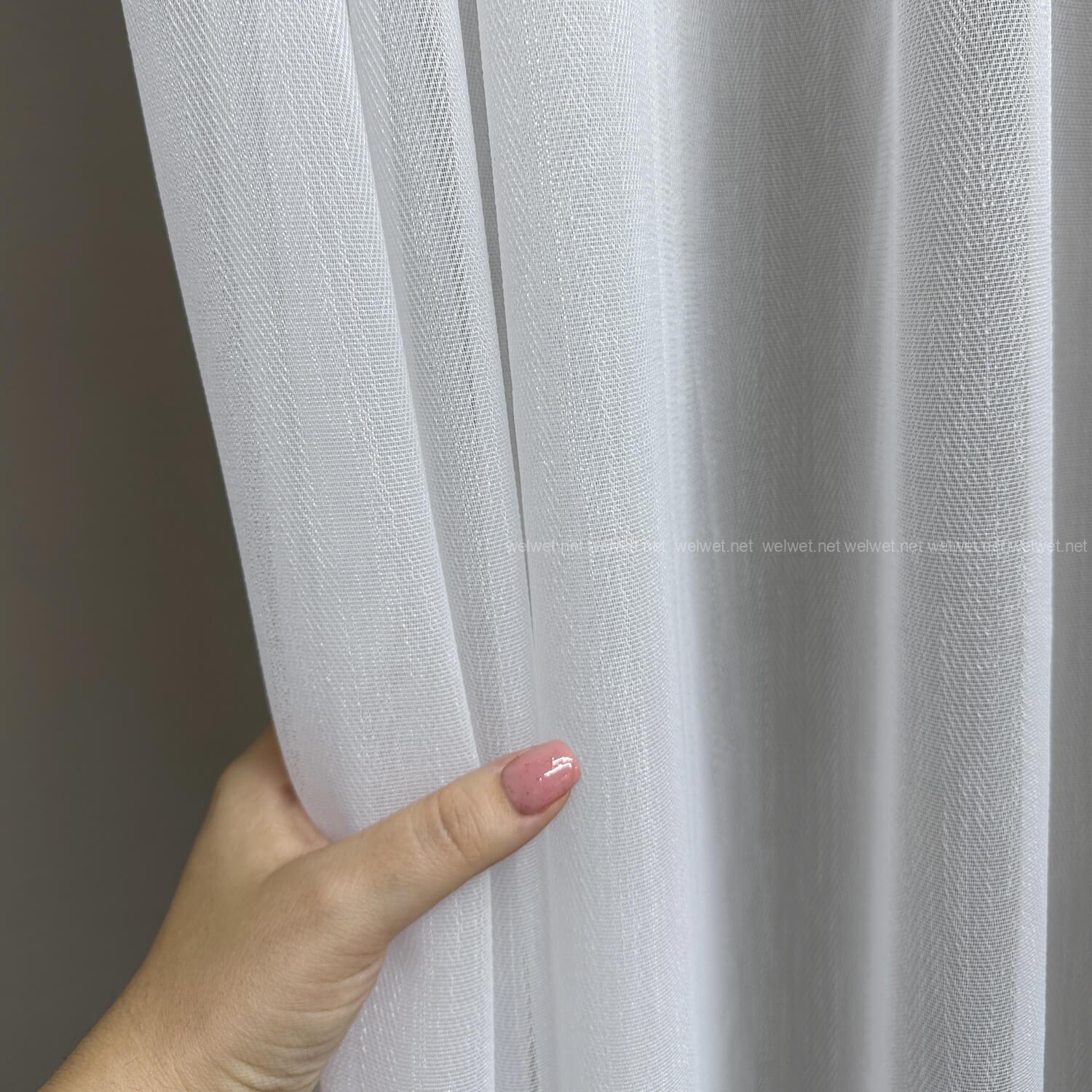 Структурный белый тюль турецкого производства. Ткань плотная, однородная структура ткани разнообразна полосками по всей поверхности ткани.