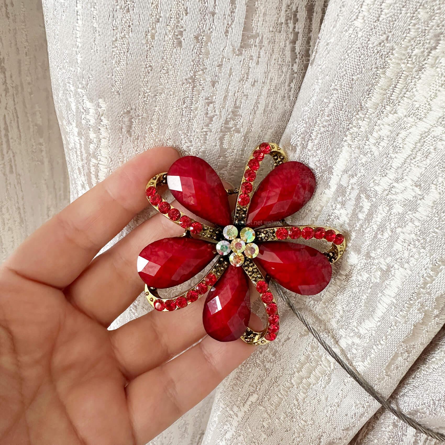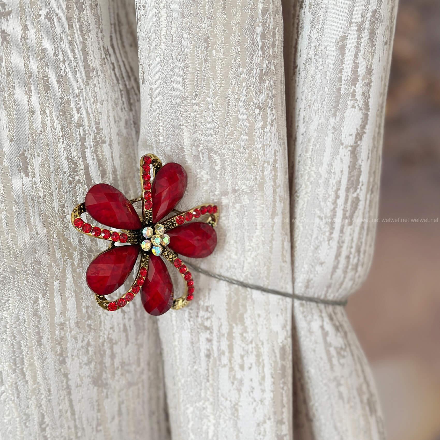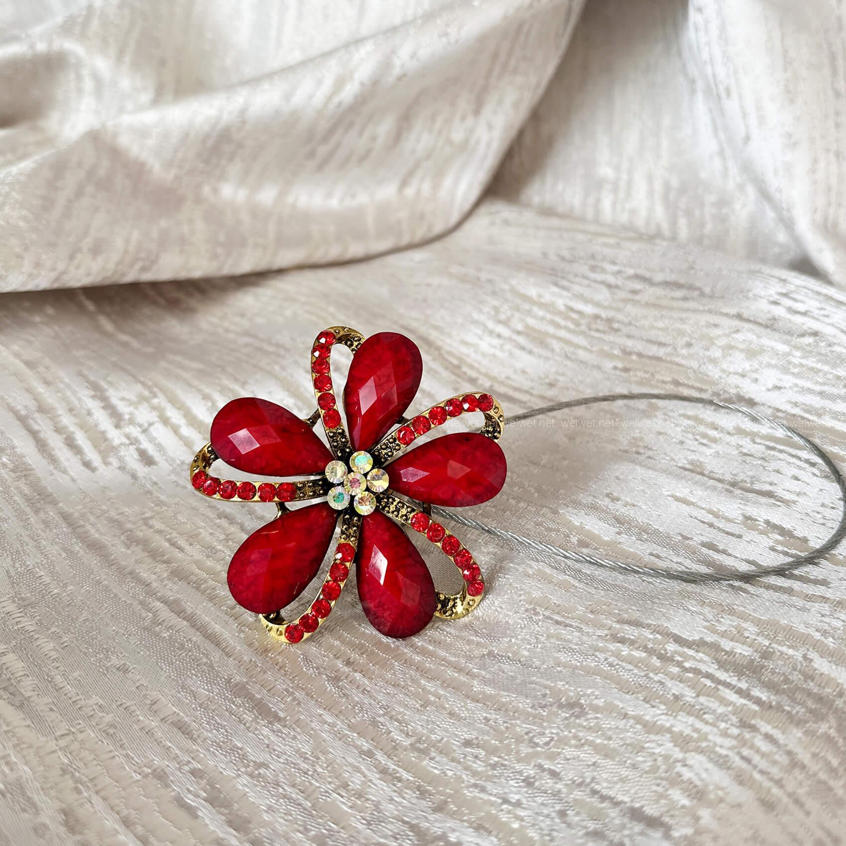 Прикраса шторна Рубін D049 чорвоний - Декоративний підхват магніт для штор у формі квітки