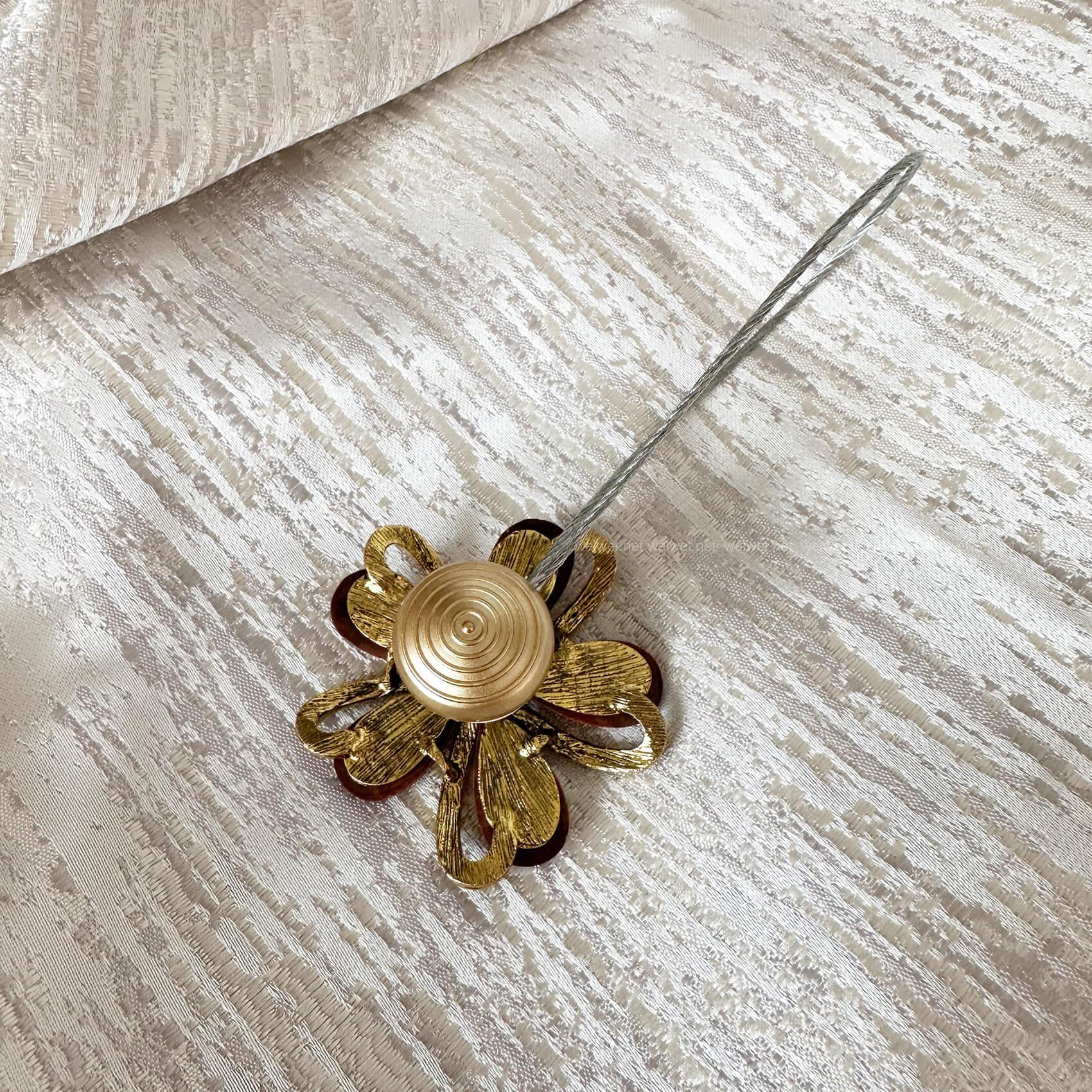 Підхват магнітний для штор у вигляді квітки на металевій основі.