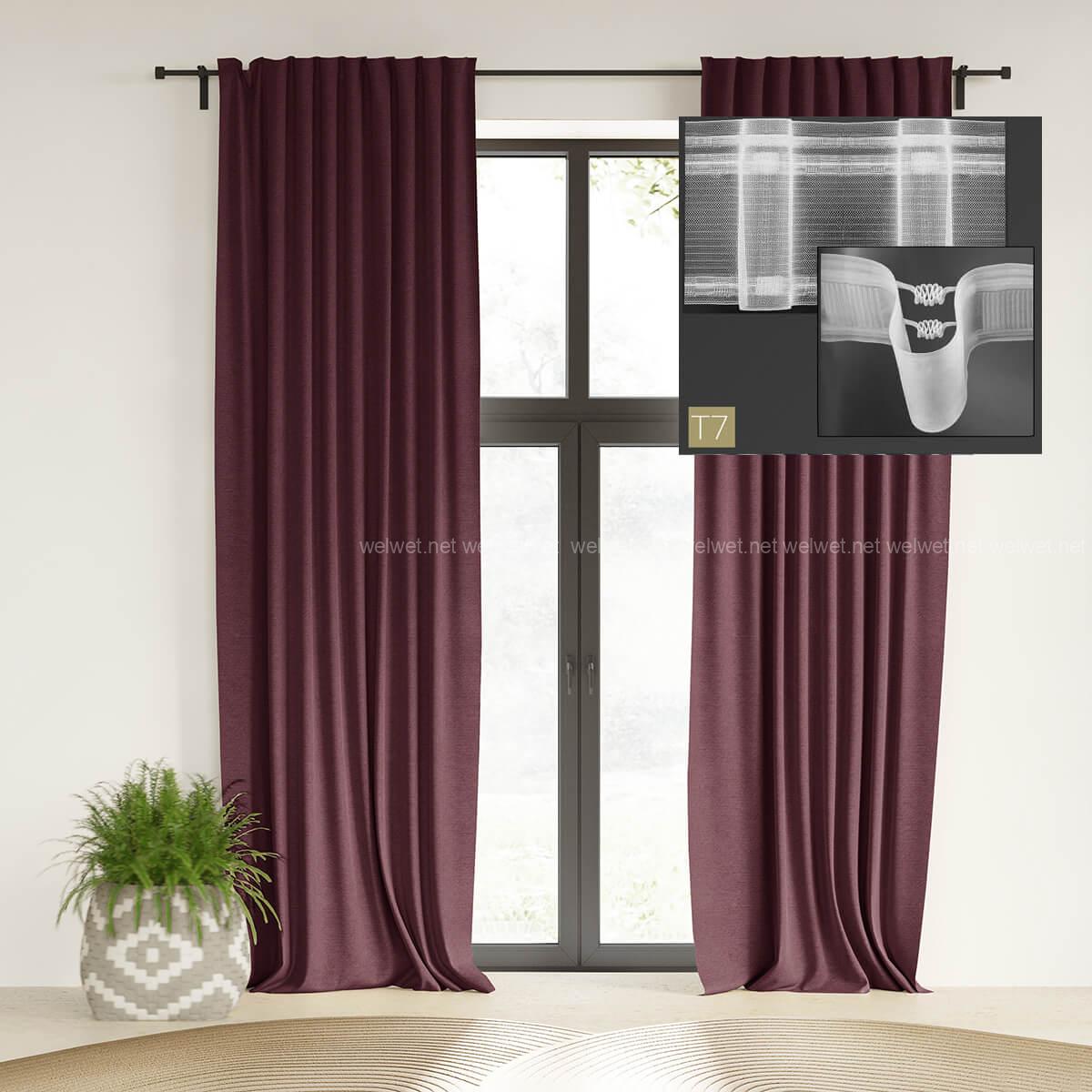 Плотные бордовые портьеры из льна Тон 5, Шторы с грубой структурой, высокие шторы под карниз трубку и крючки1,5х3м -2 шт