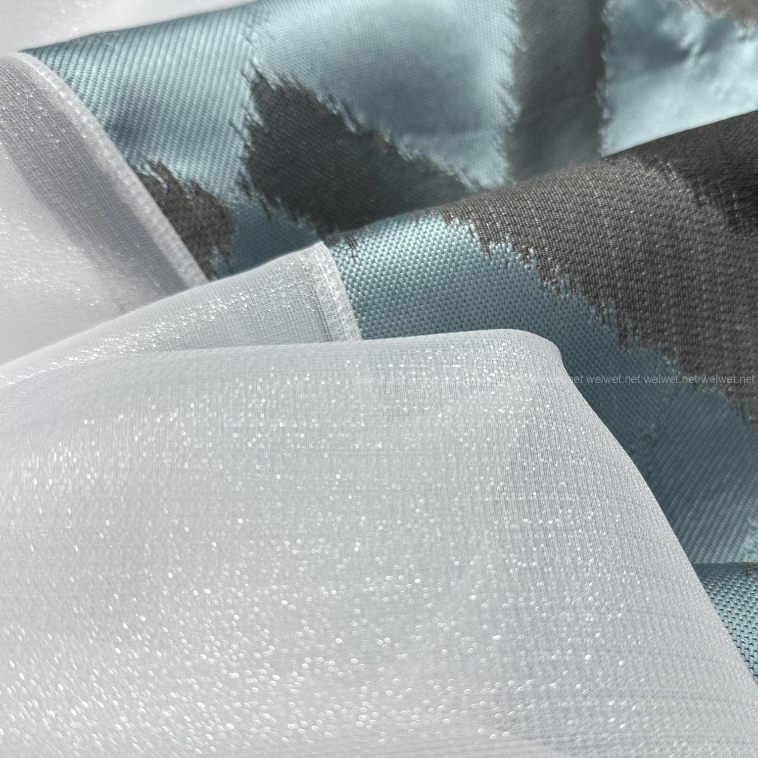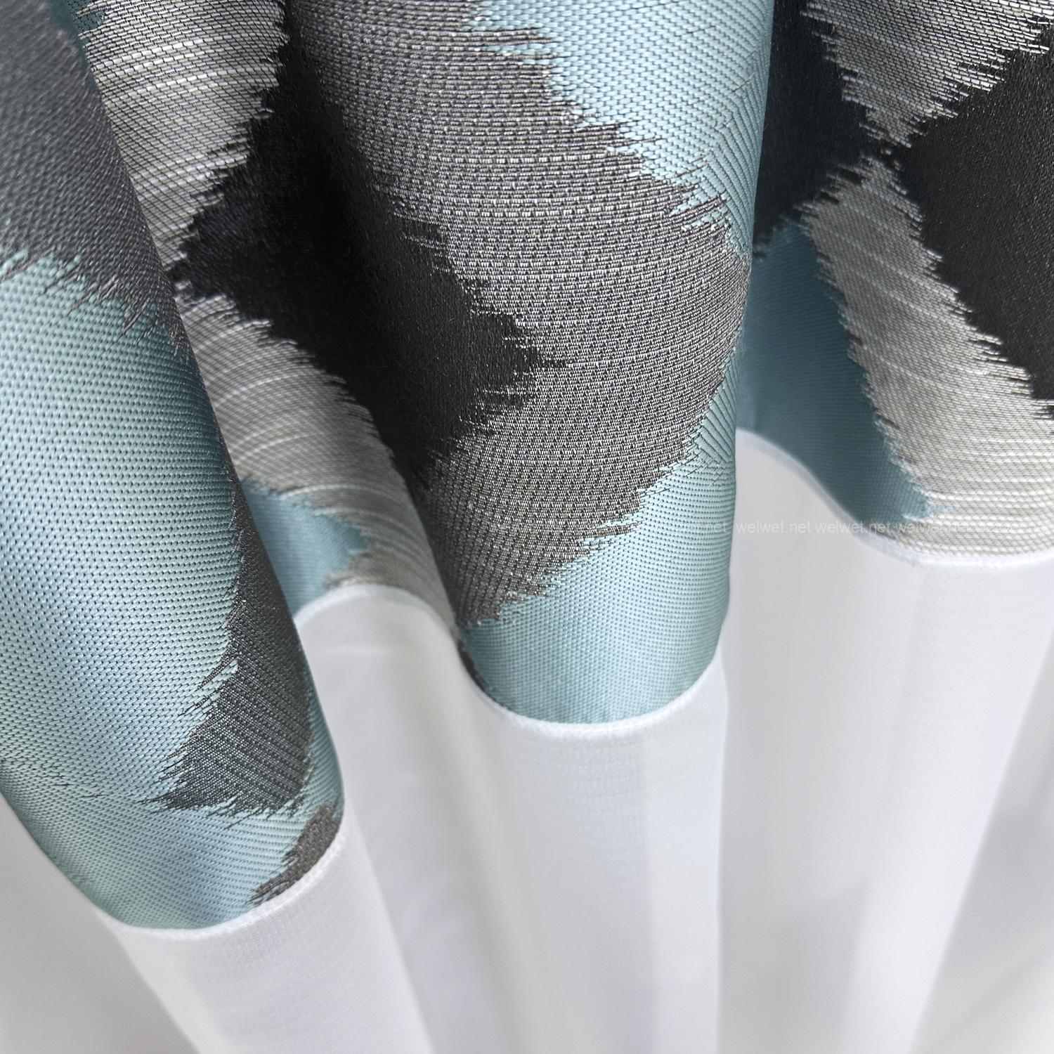 Легкая тюлевая арка с акцентами плотной ткани в бирюзово-сером цвете.