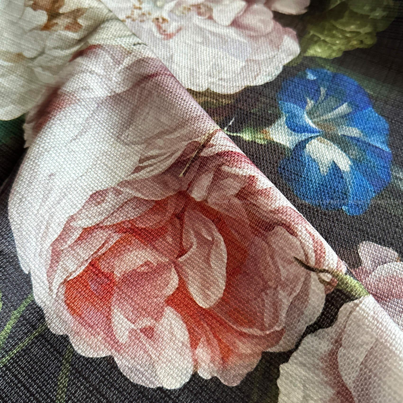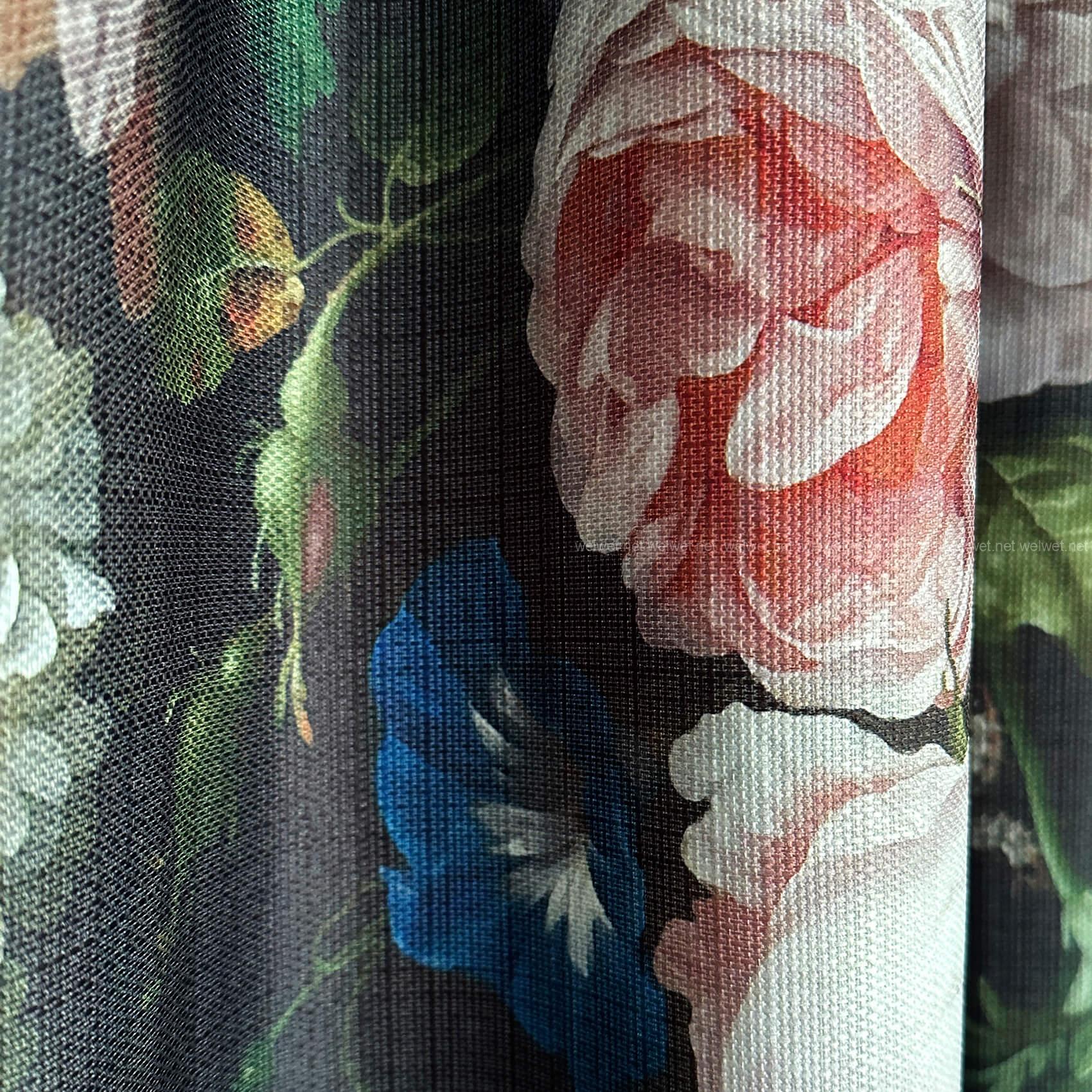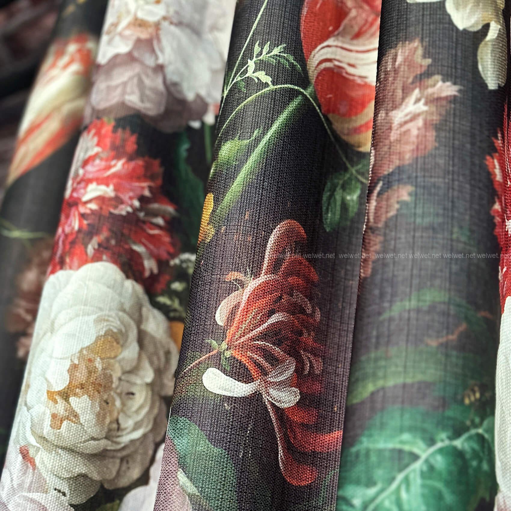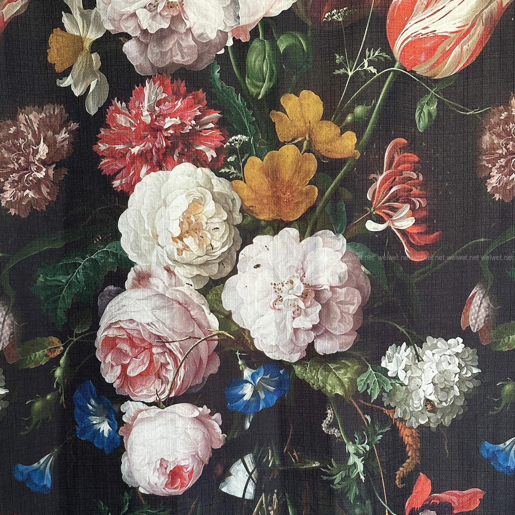 Комплект штор с текстурой льна с рисунком цветочных натюрмортов в голландском стиле.