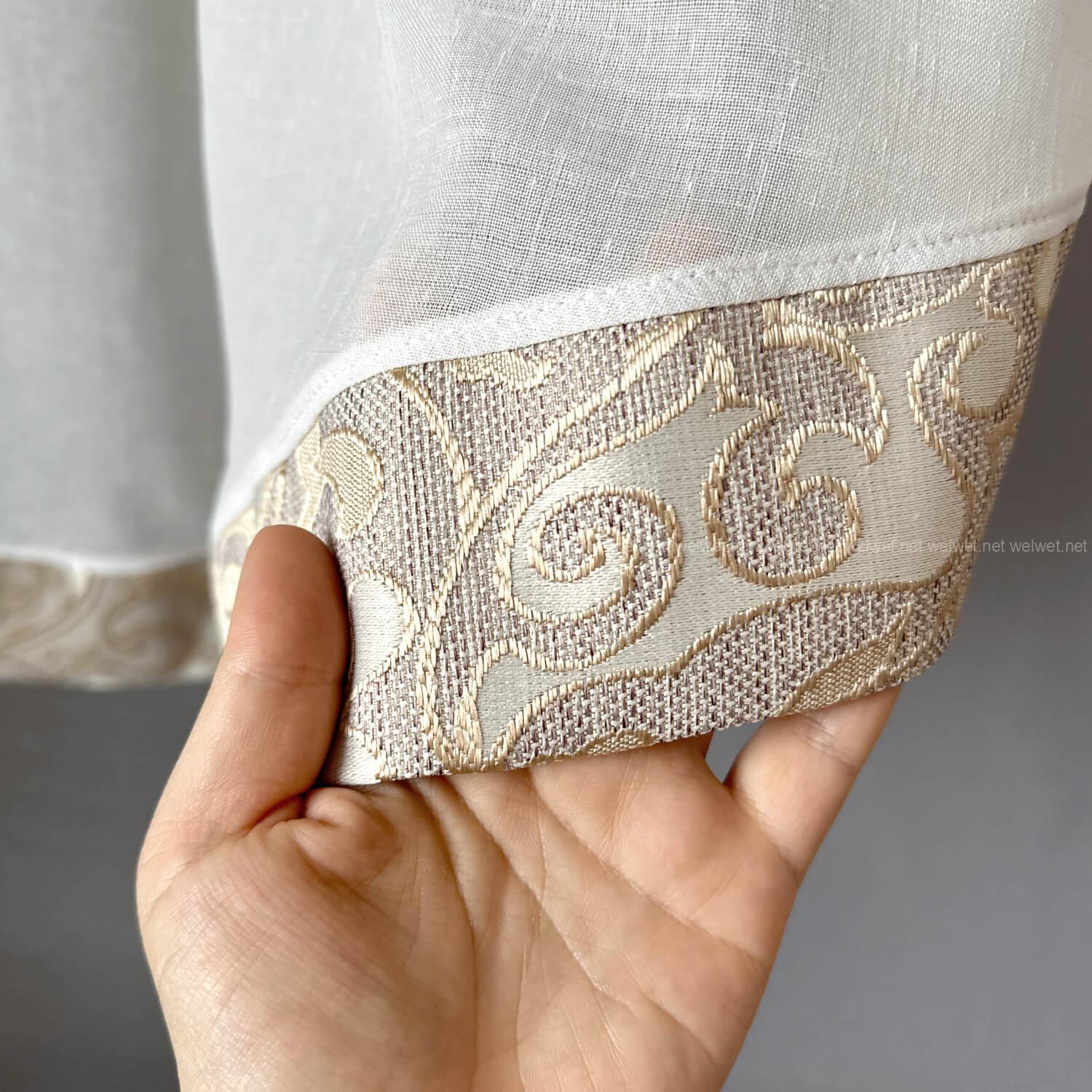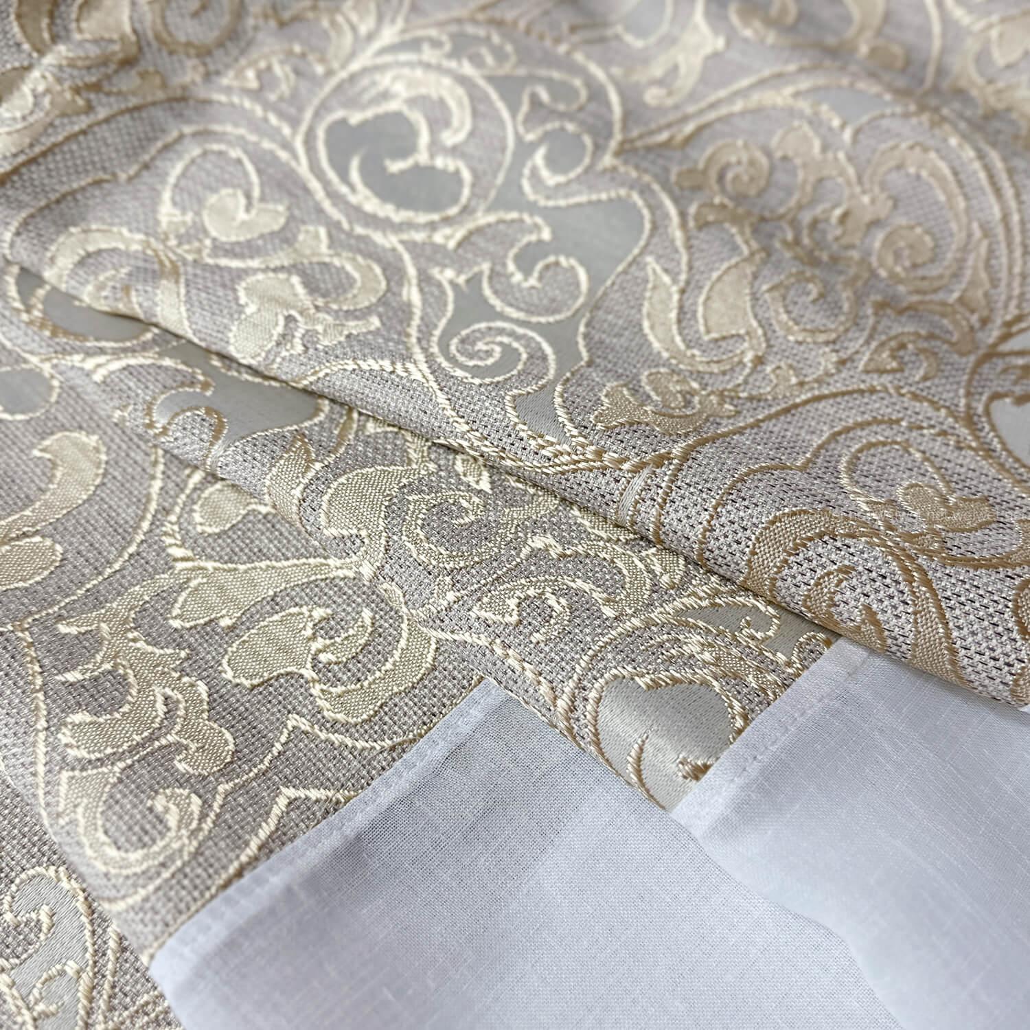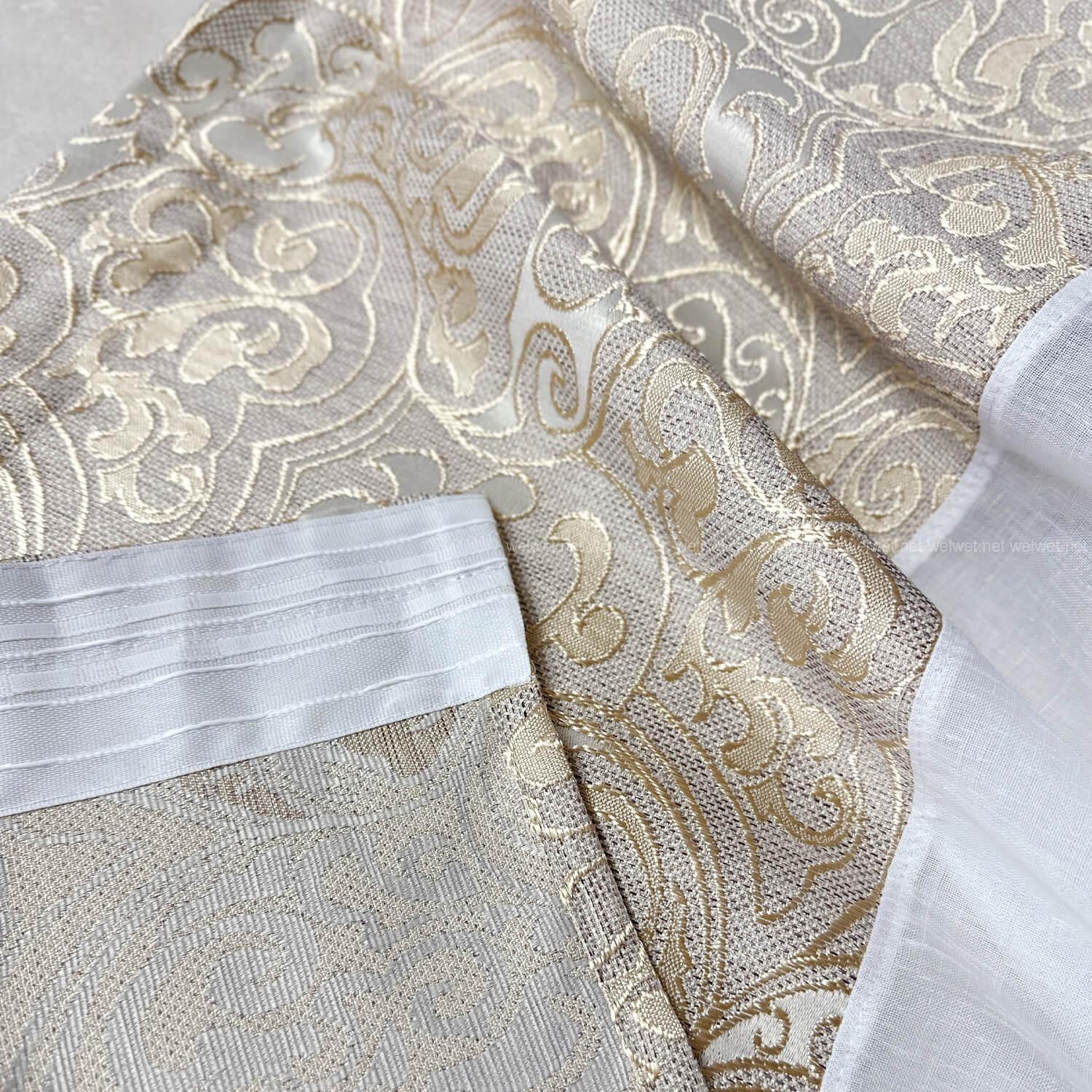 Легкая тюлевая арка с акцентами плотной ткани мешковины в бежевом цвете.