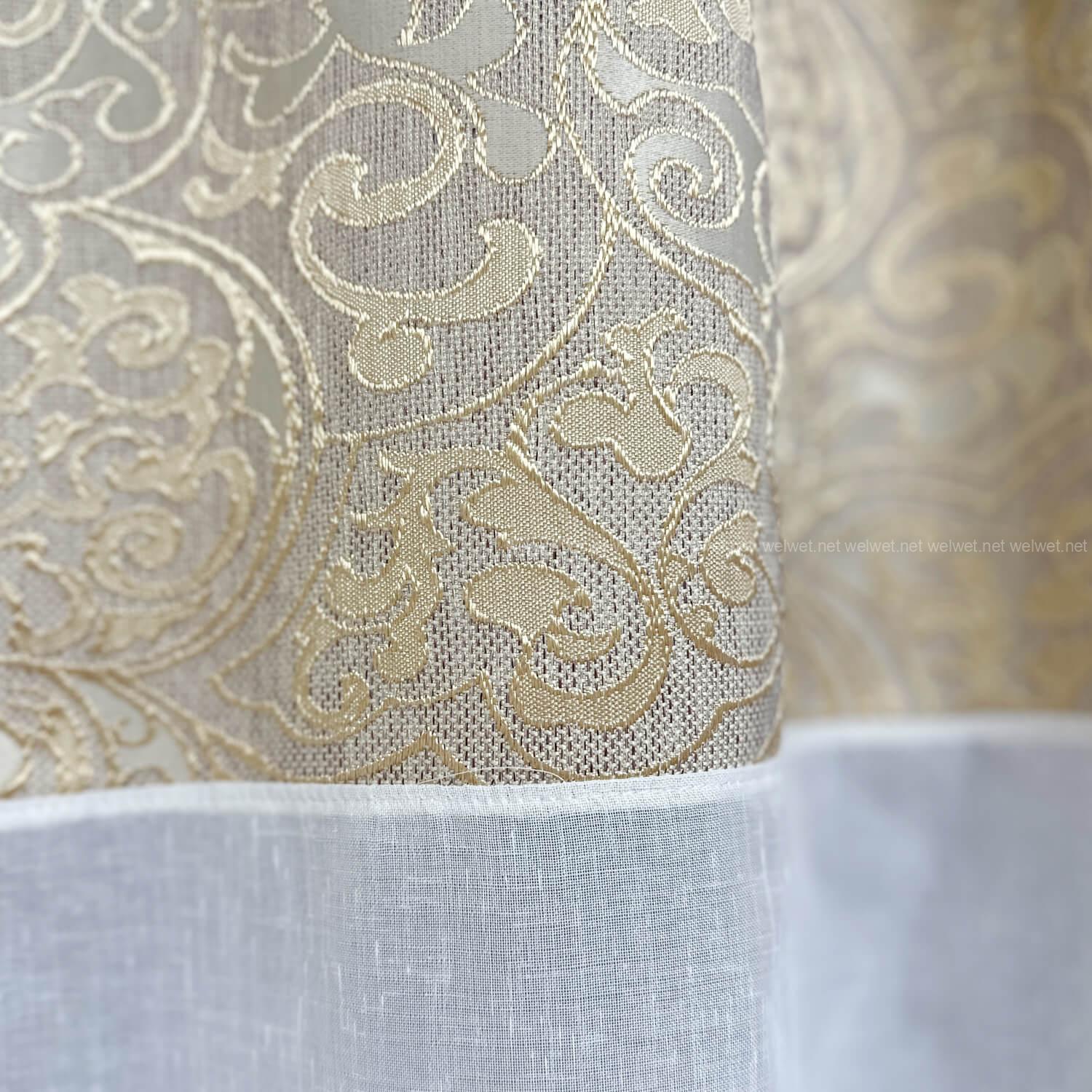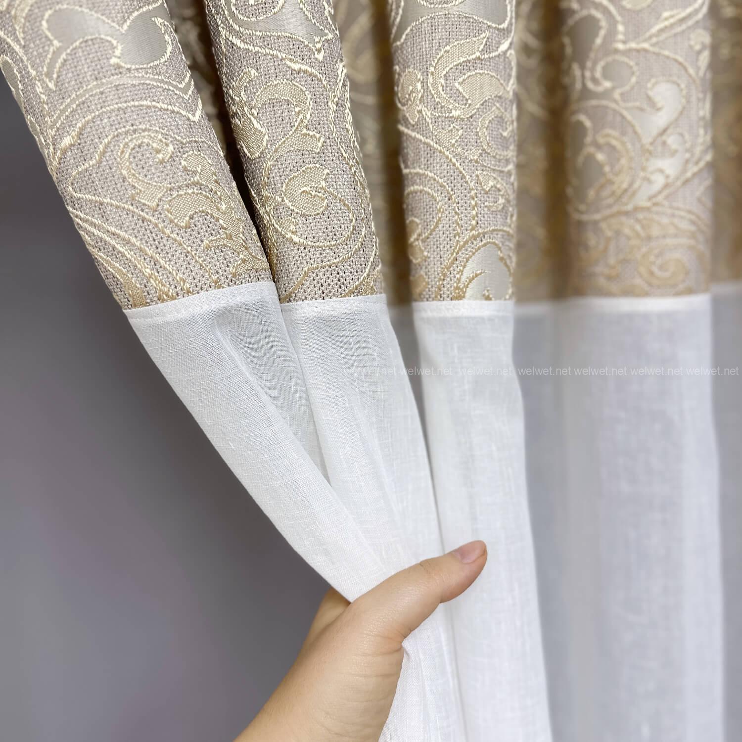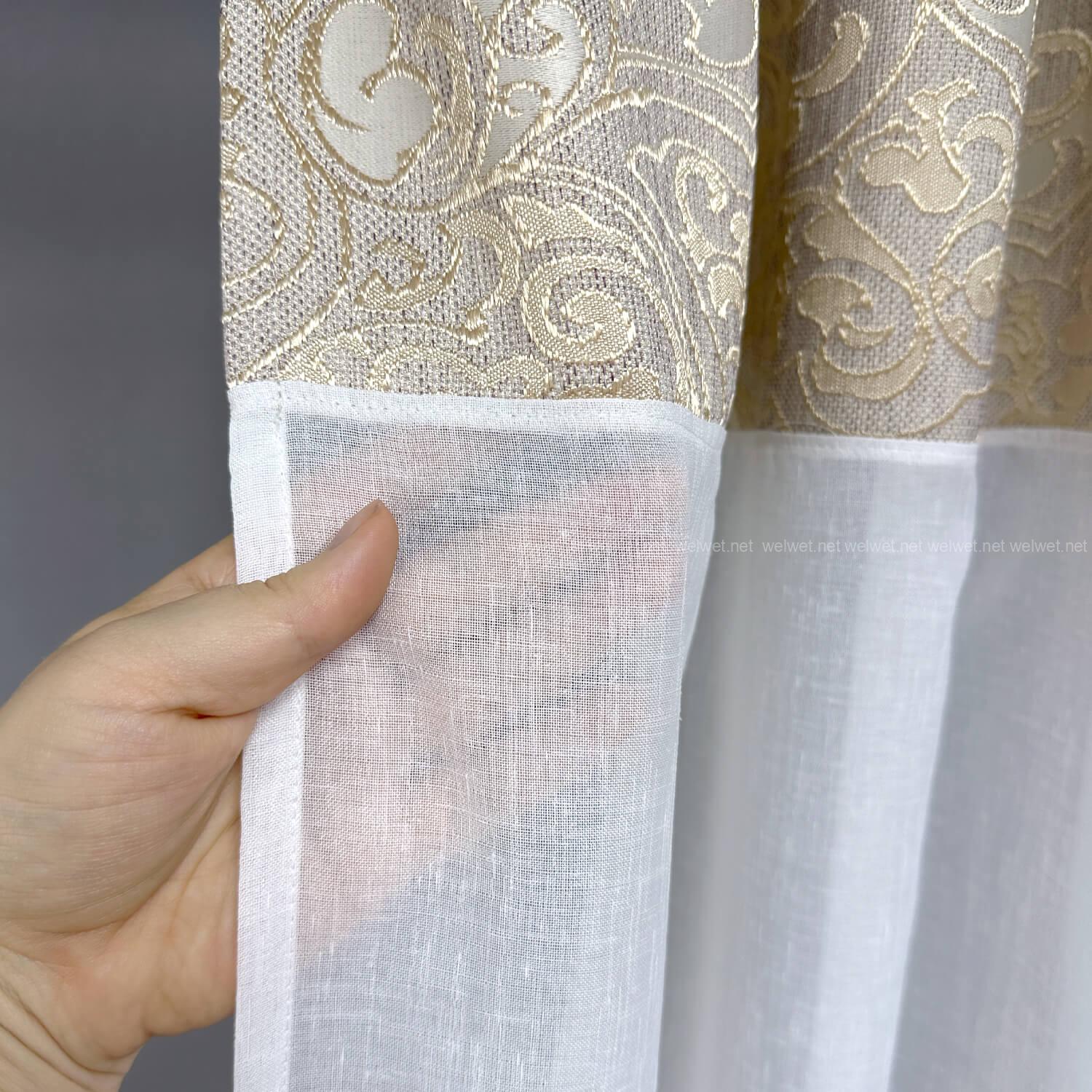 Легкая тюлевая арка с акцентами плотной ткани мешковины в бежевом цвете.