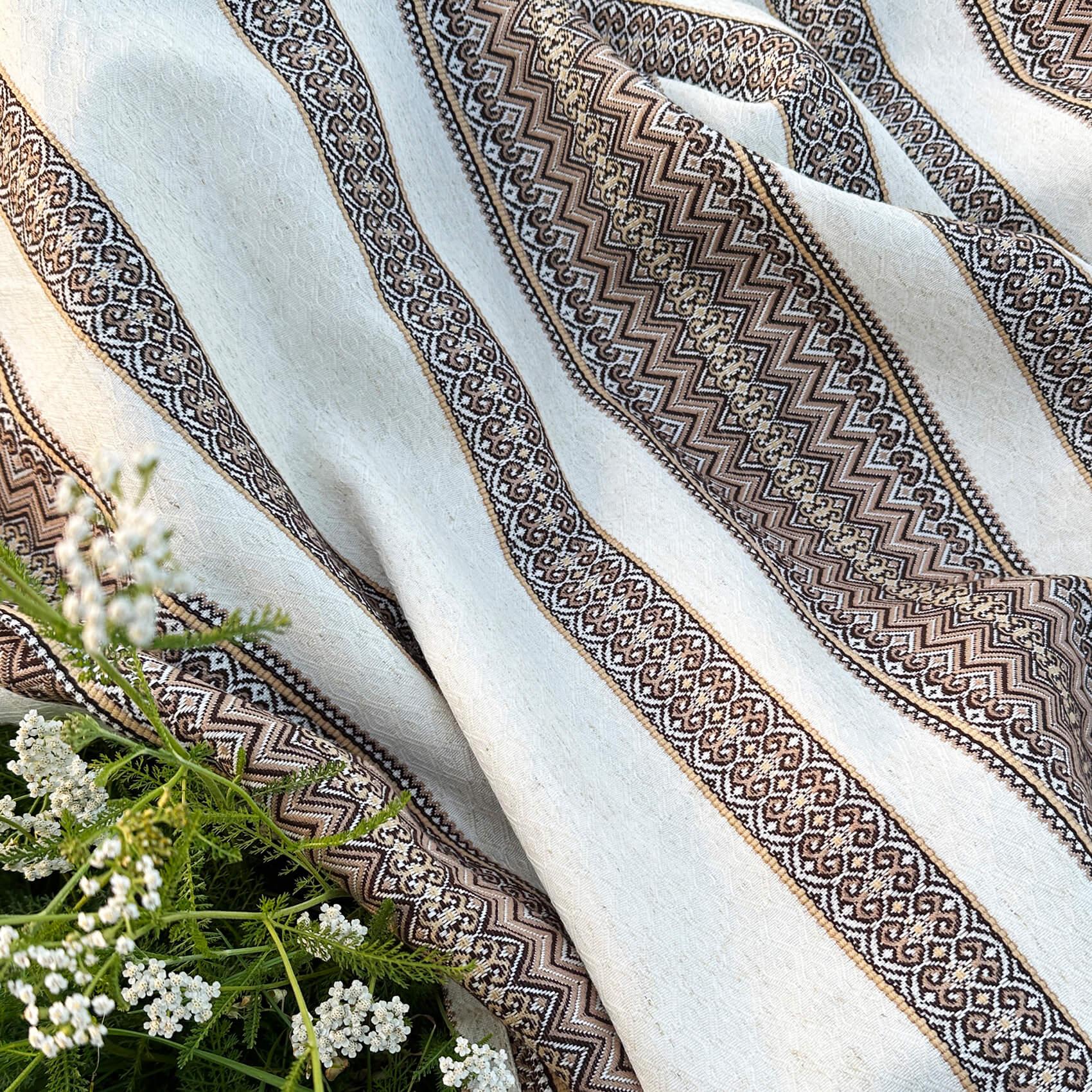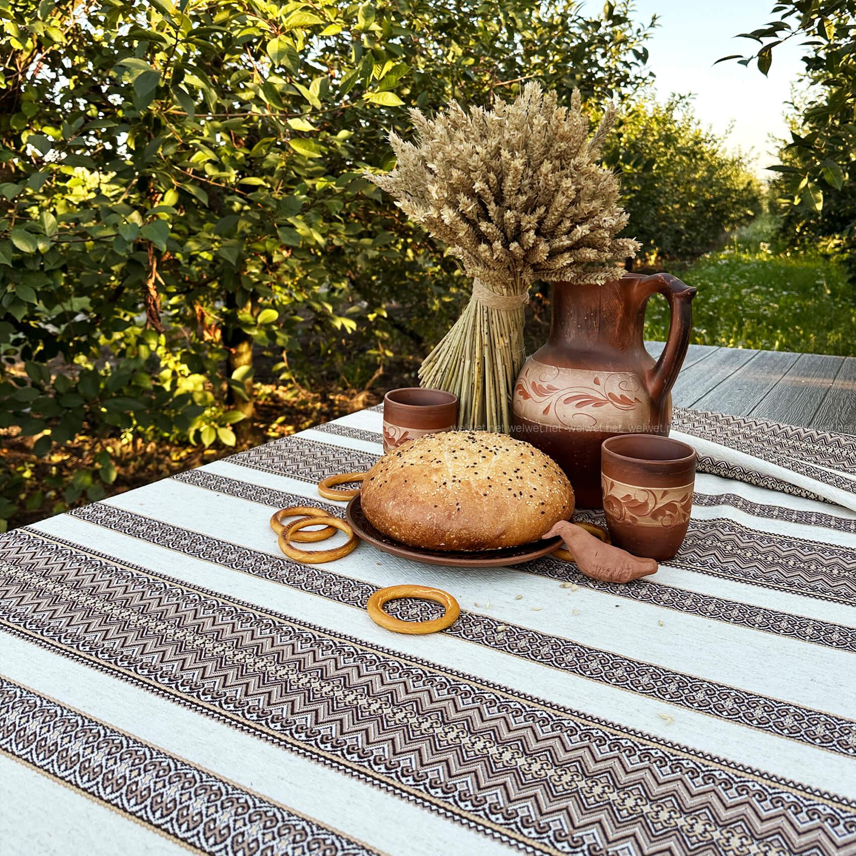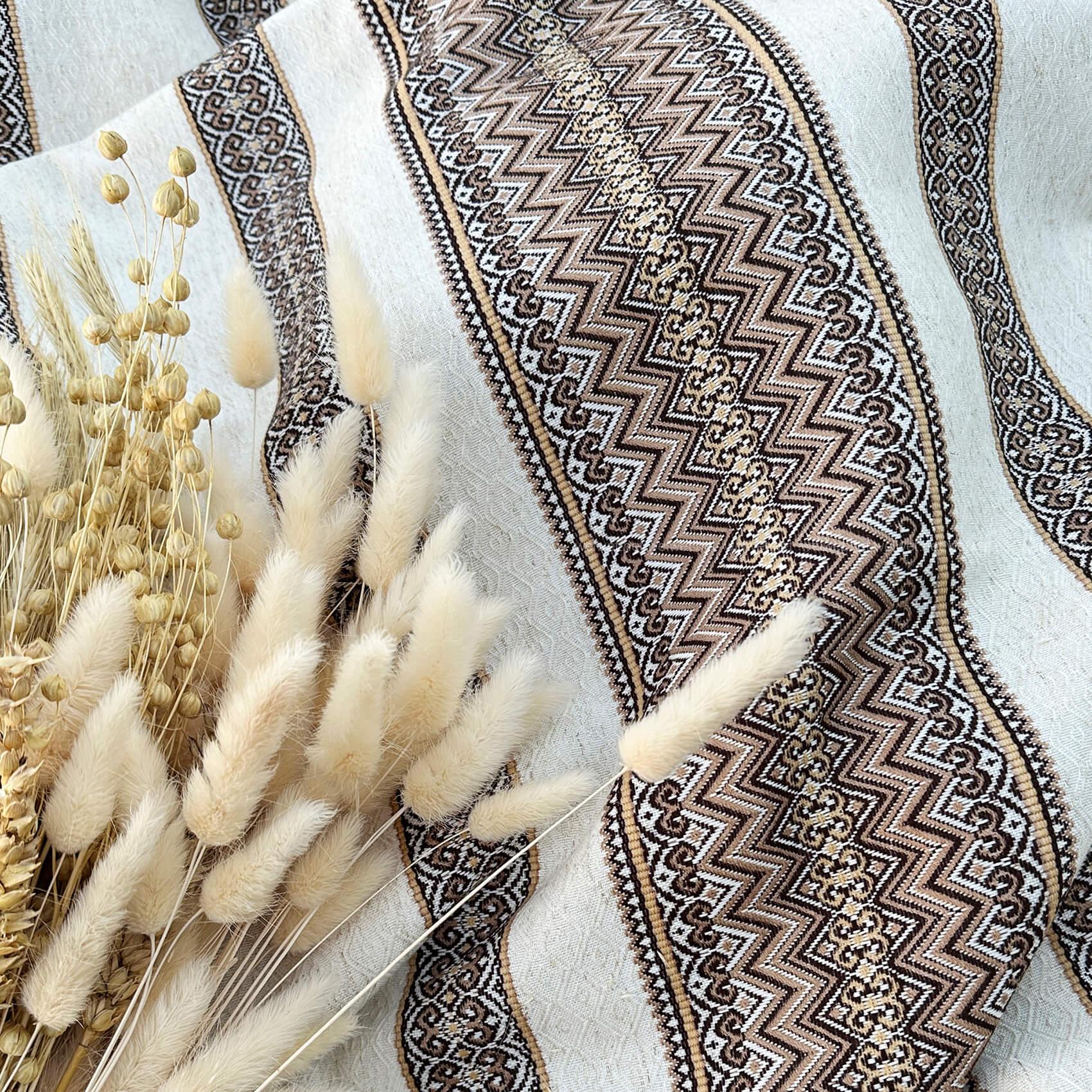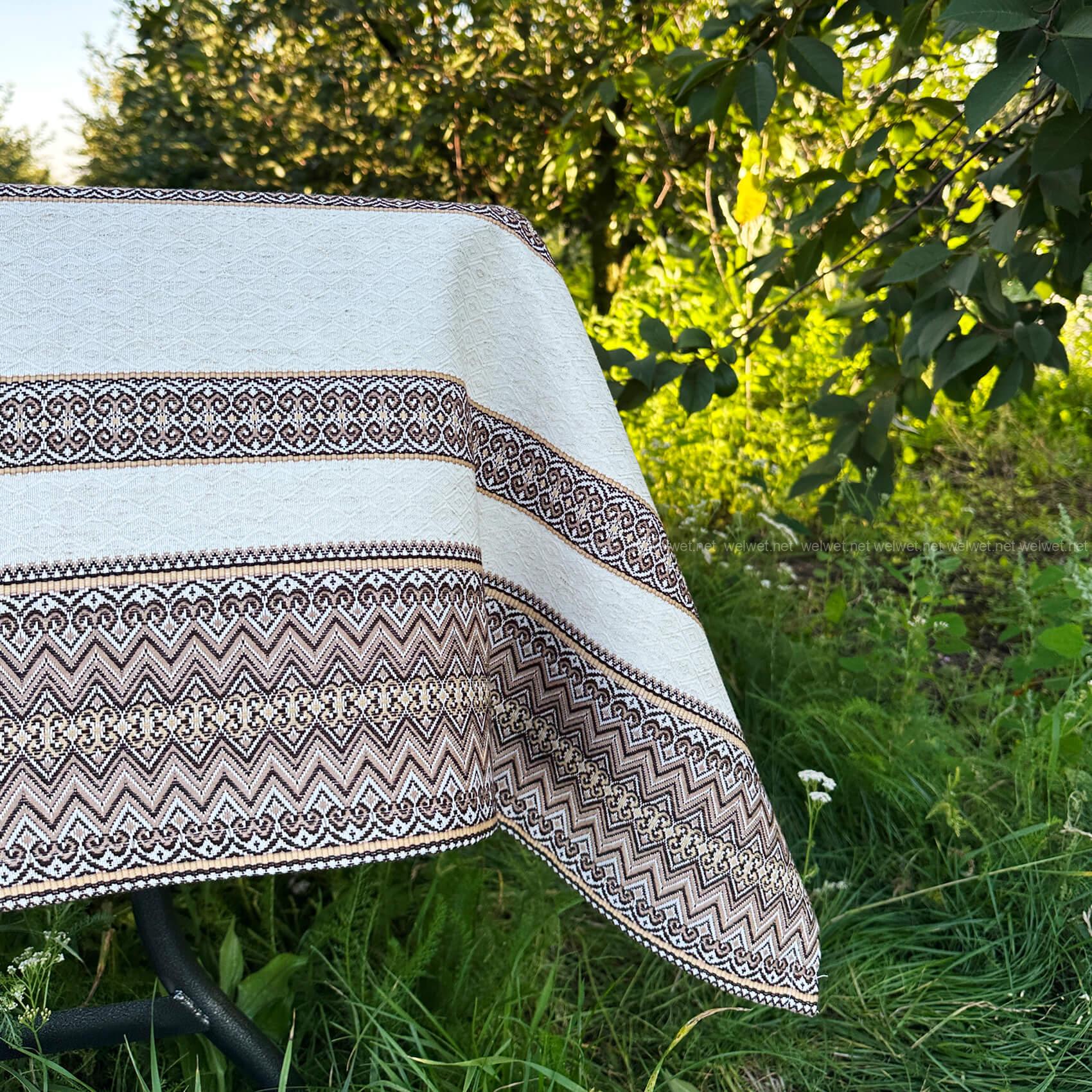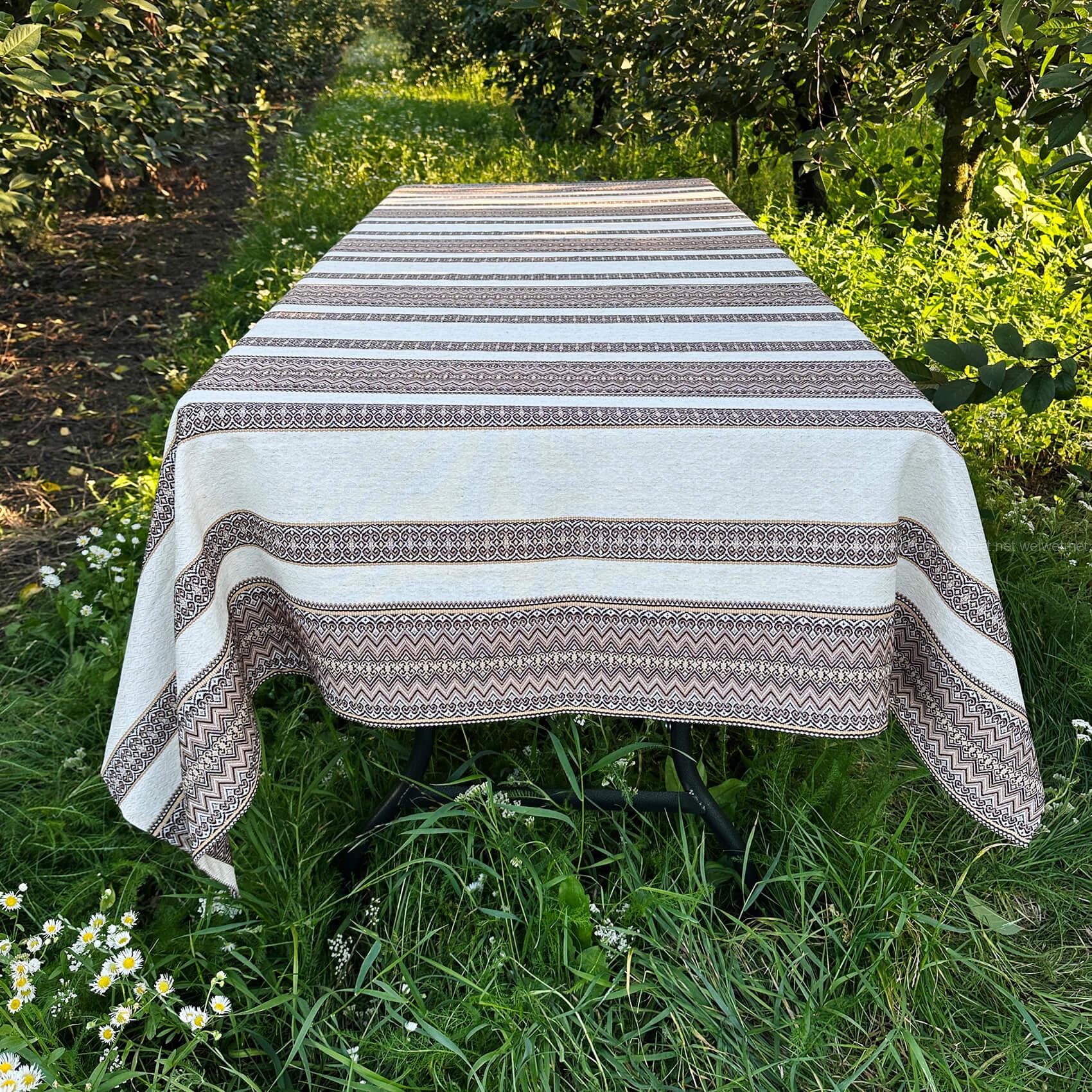 Скатертина в українському стилі з якісного полотна на основі льону— стильна основа сервірування, яка поєднує простоту та національні етнічні мотиви.