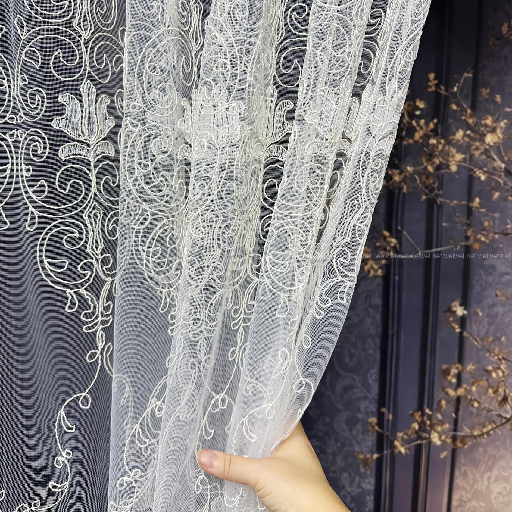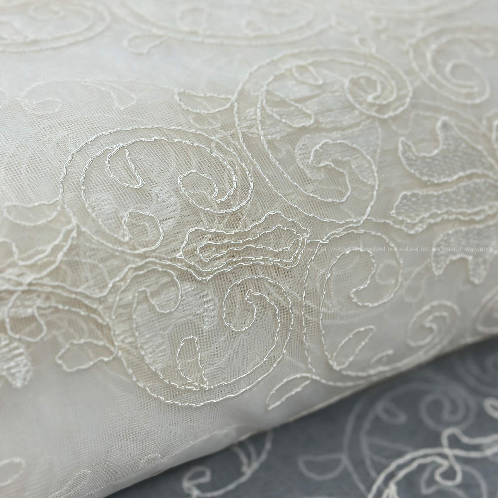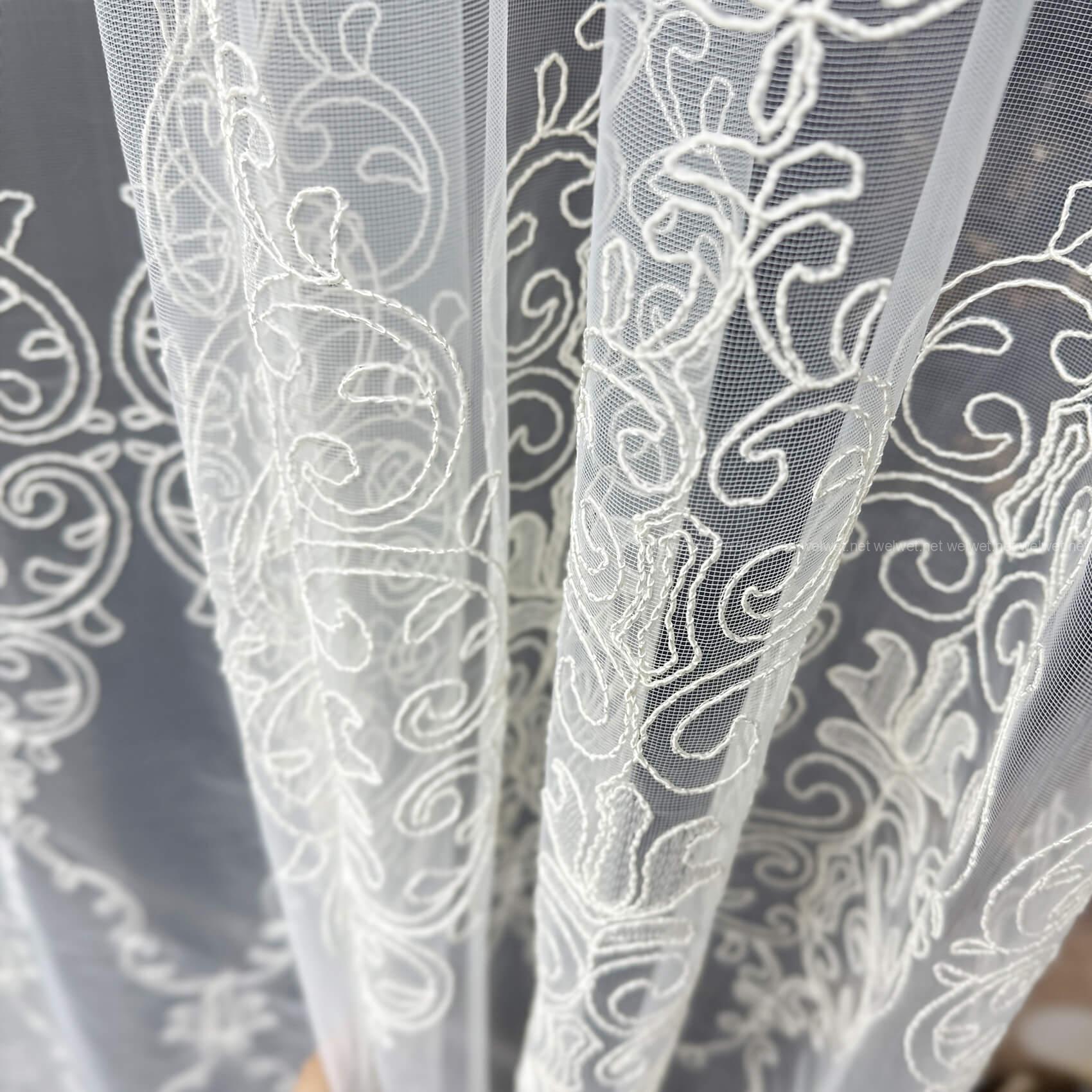 Ткань турецкого производства молочного цвета с объемной и фактурной кордовой цветочной вышивкой шелковой нитью. Высота ткани - 3,1 м.