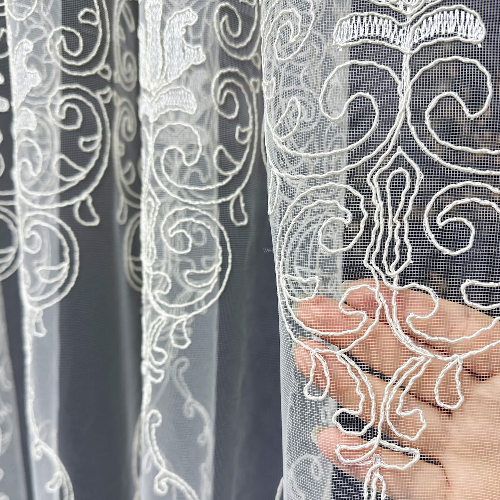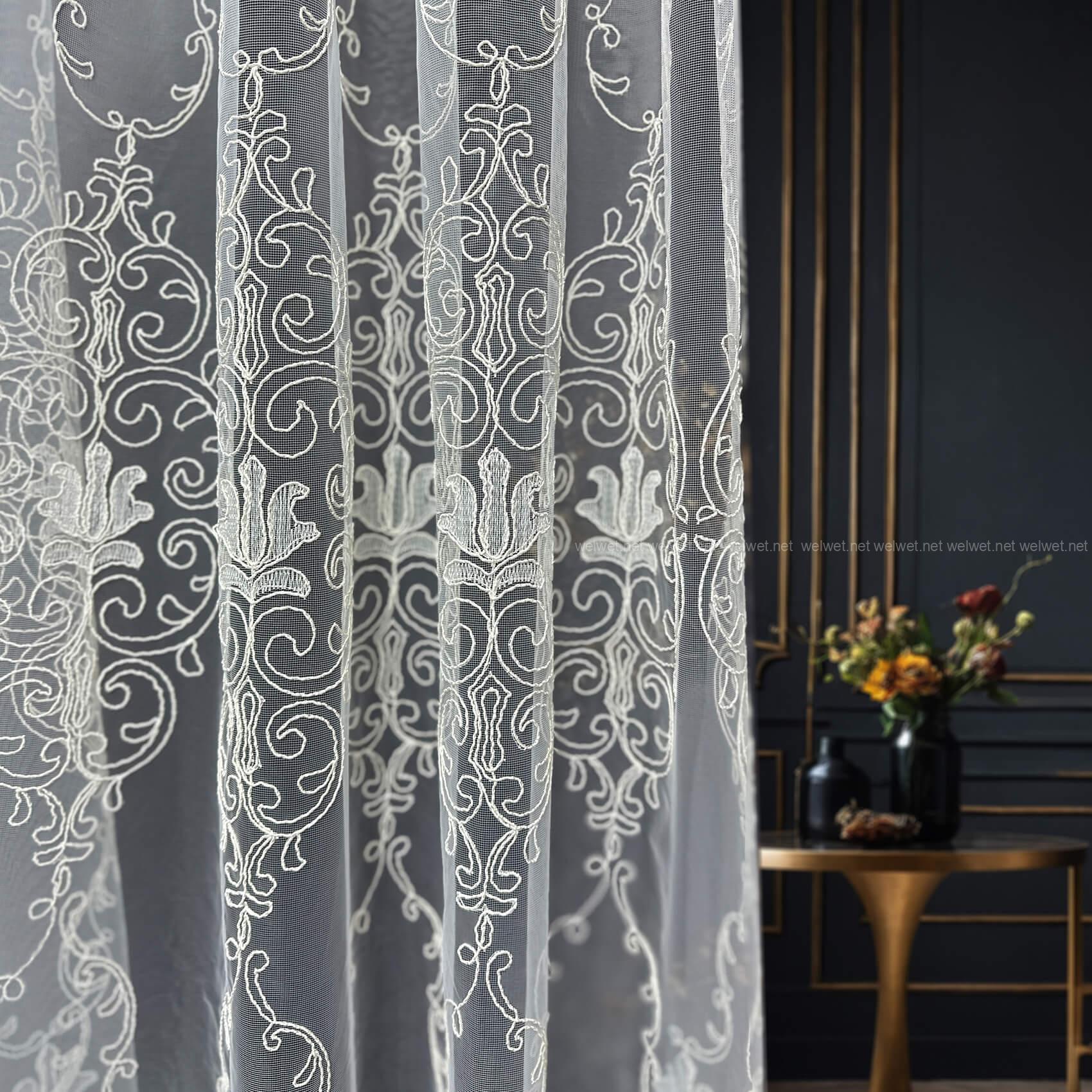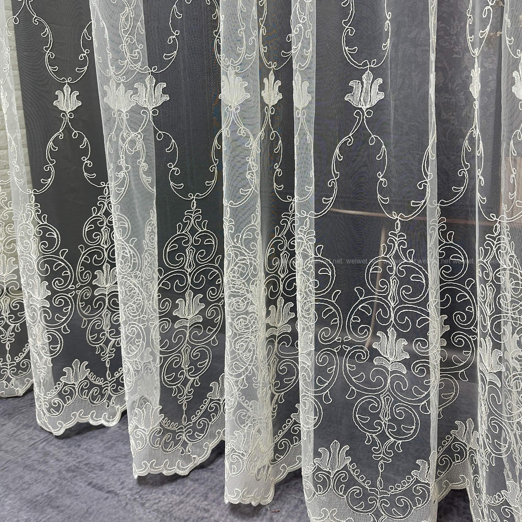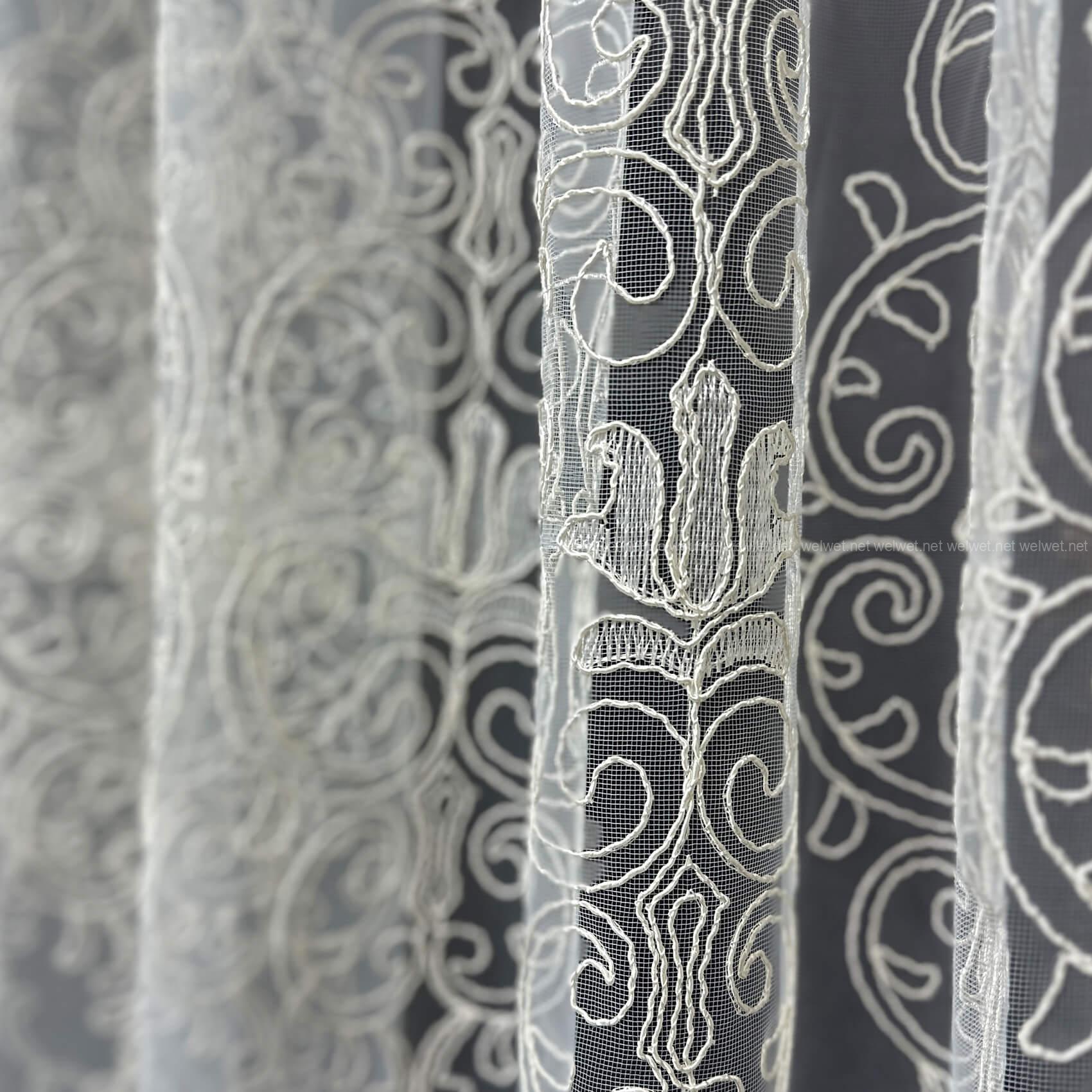 Ткань турецкого производства молочного цвета с объемной и фактурной кордовой цветочной вышивкой шелковой нитью. Высота ткани - 3,1 м.