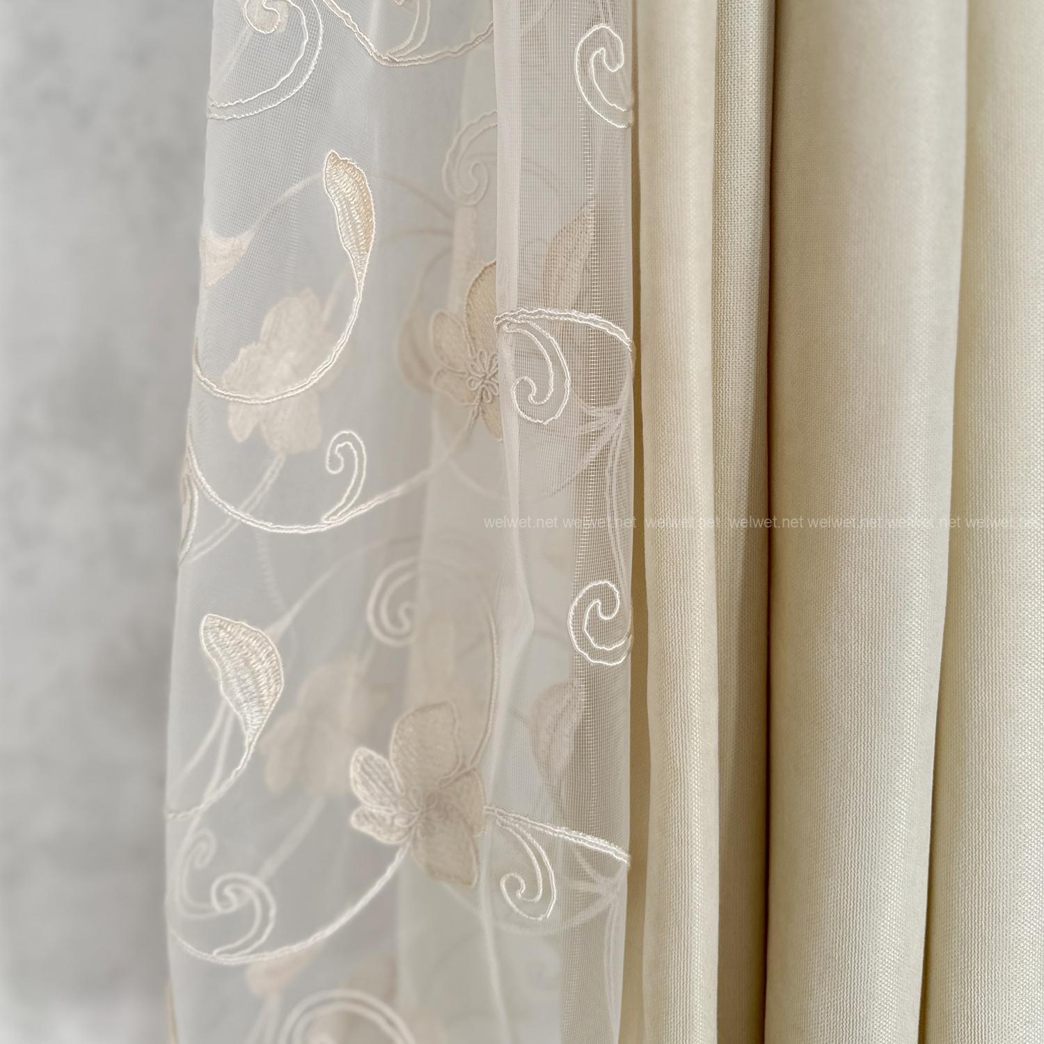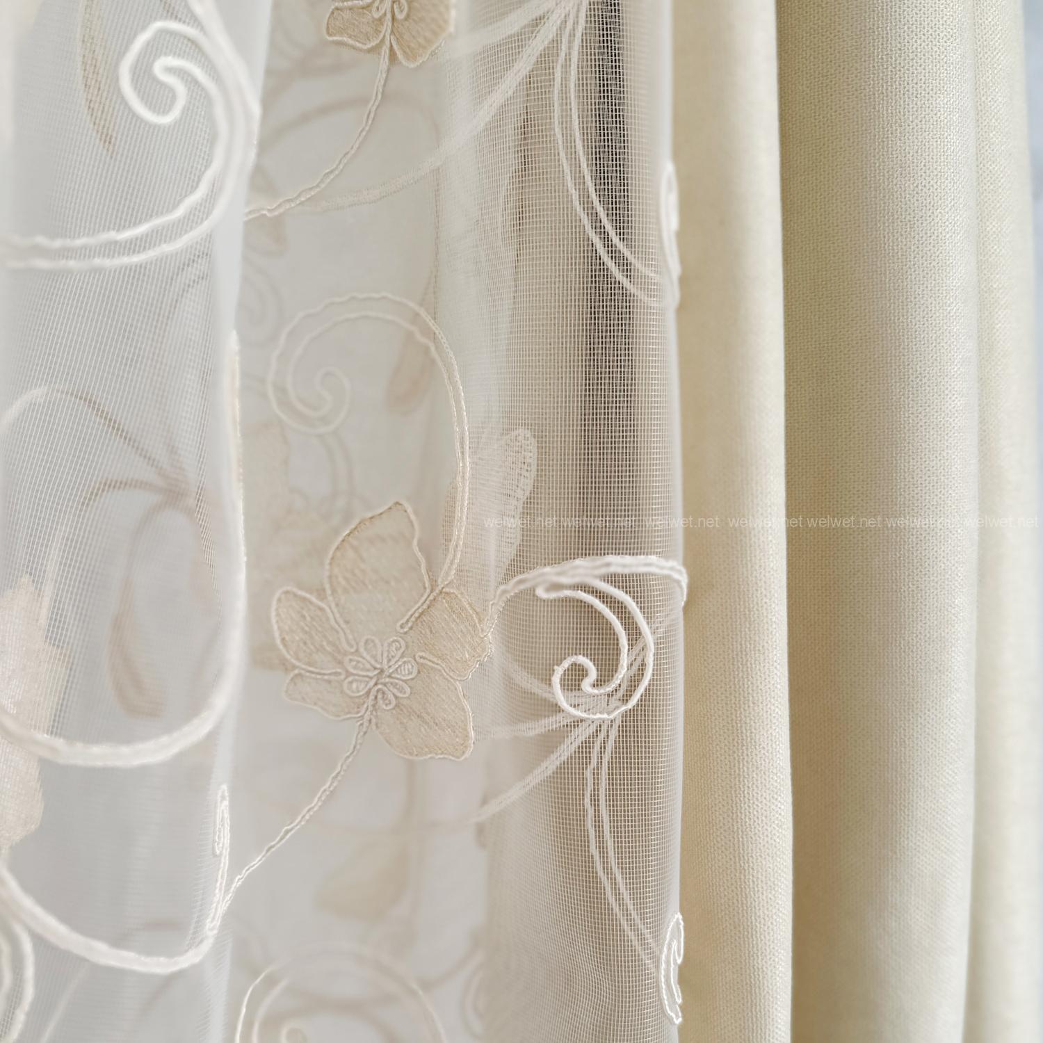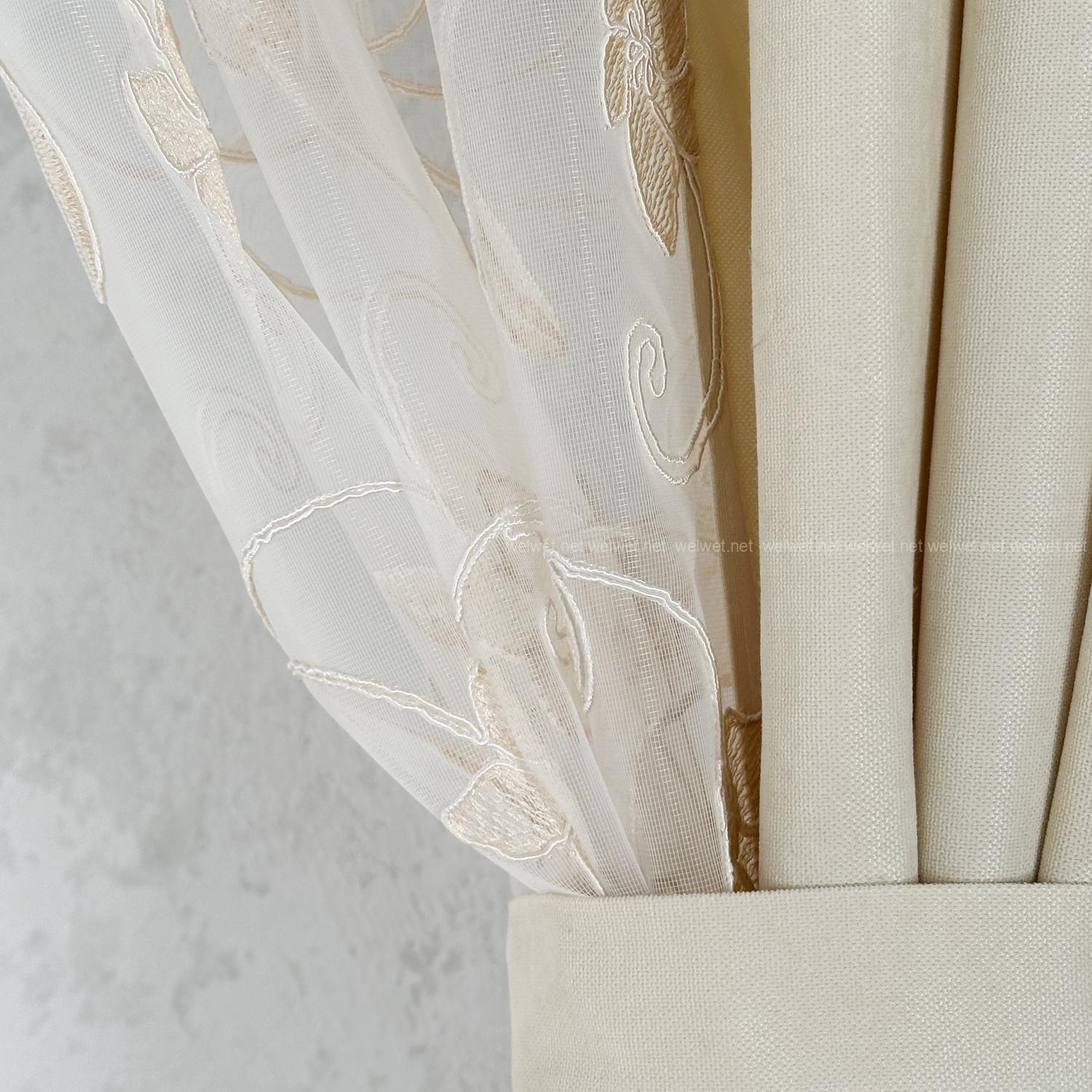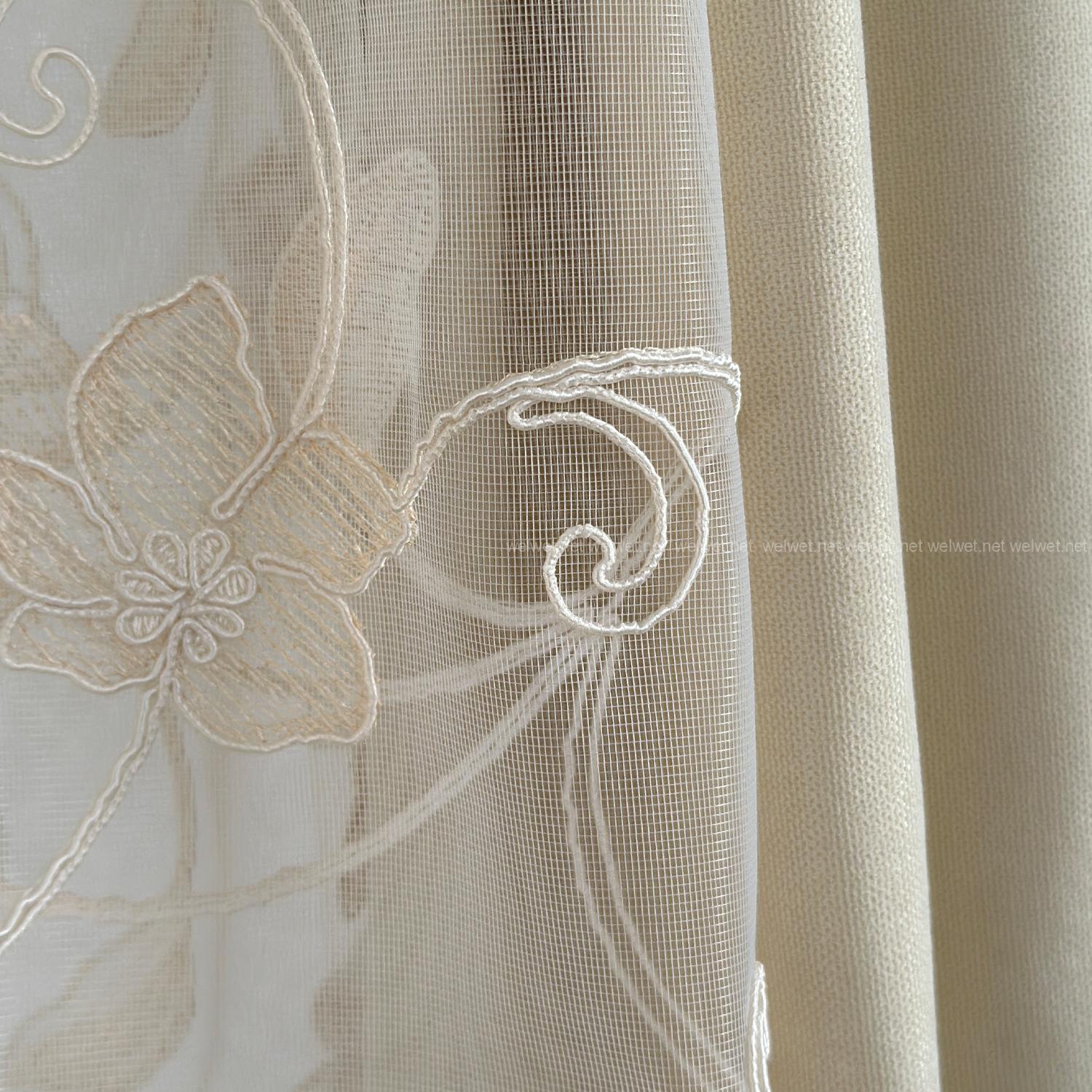 Шторы с тюлевой вставкой соединены на сплошной тесьме.
