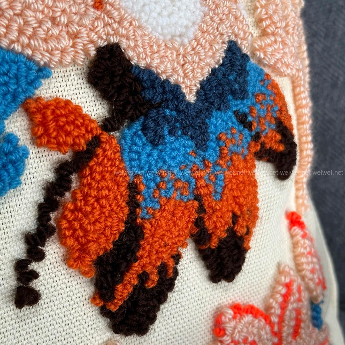 Рекомендации по уходу: Точечная чистка, используйте только ручную стирку, перед стиркой подушку вывернуть наизнанку и стирать при температуре не выше 40 градусов, без замачивания, без отбеливания, без использования агрессивных моющих средств. Сушить только на воздухе, не в сушильной машине. Не тяните за пряжу.