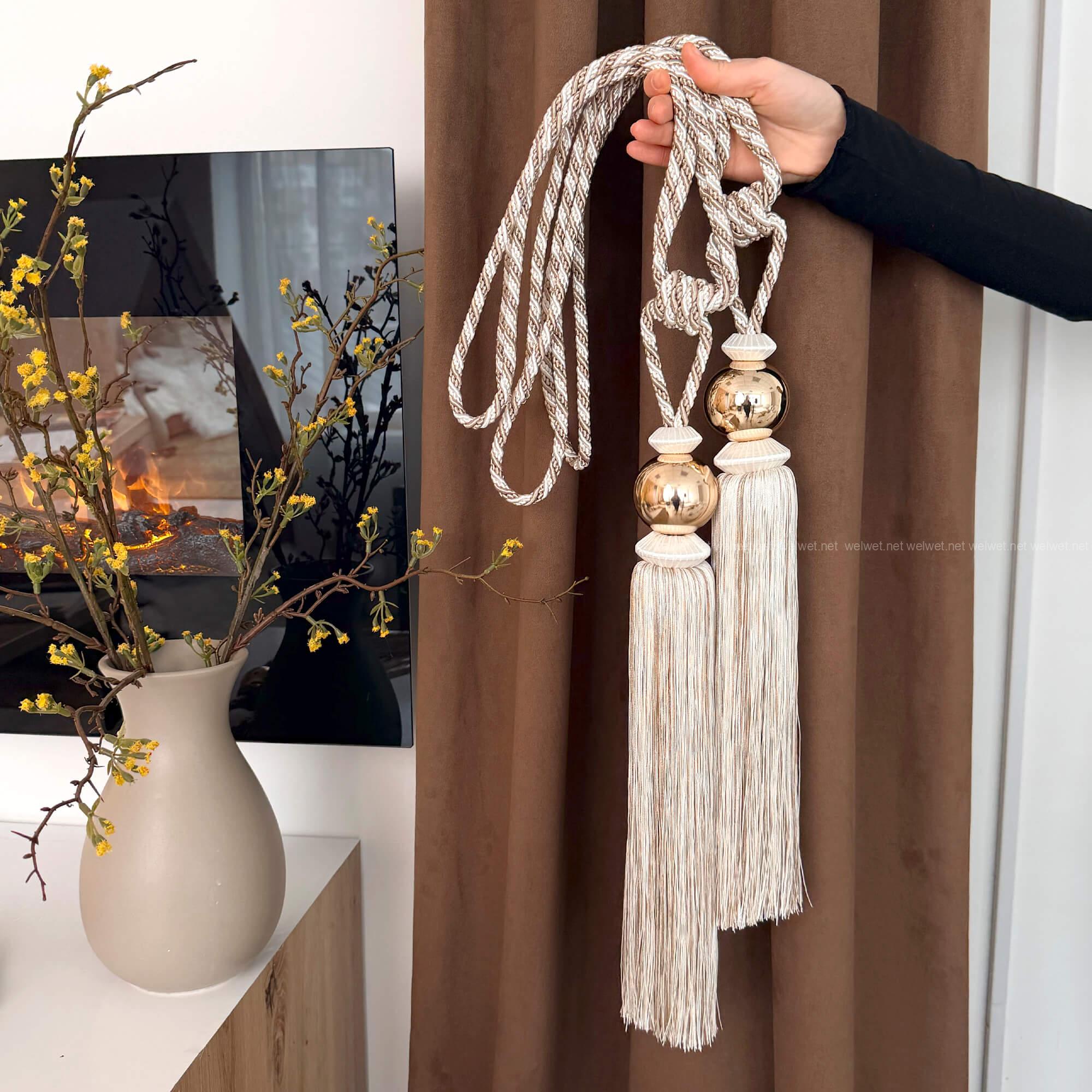 Сучасні китиці підхвати для штор з золотистою фурнітурою - 1шт, Молочно бежеві кутаси тримачі шторні